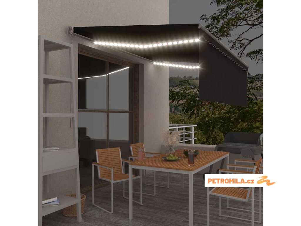 Ručně zatahovací markýza s roletou a LED 4,5 x 3 m antracitová