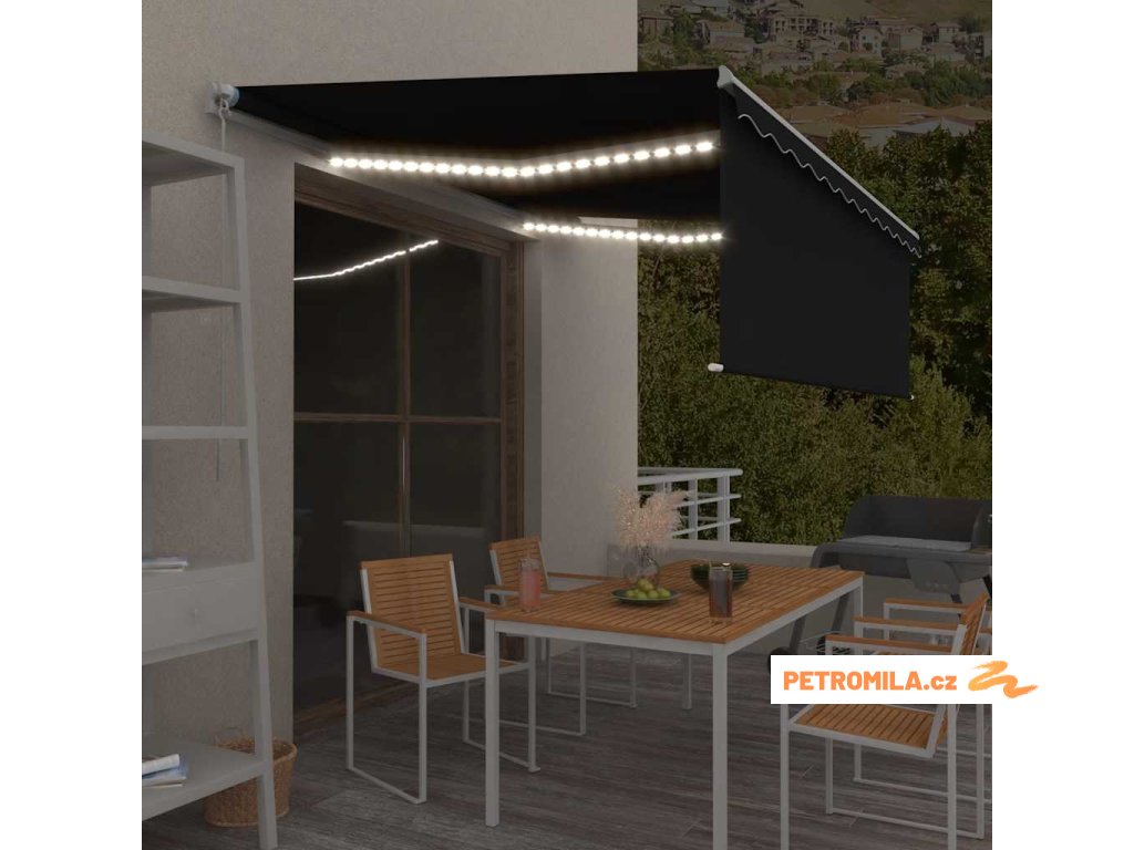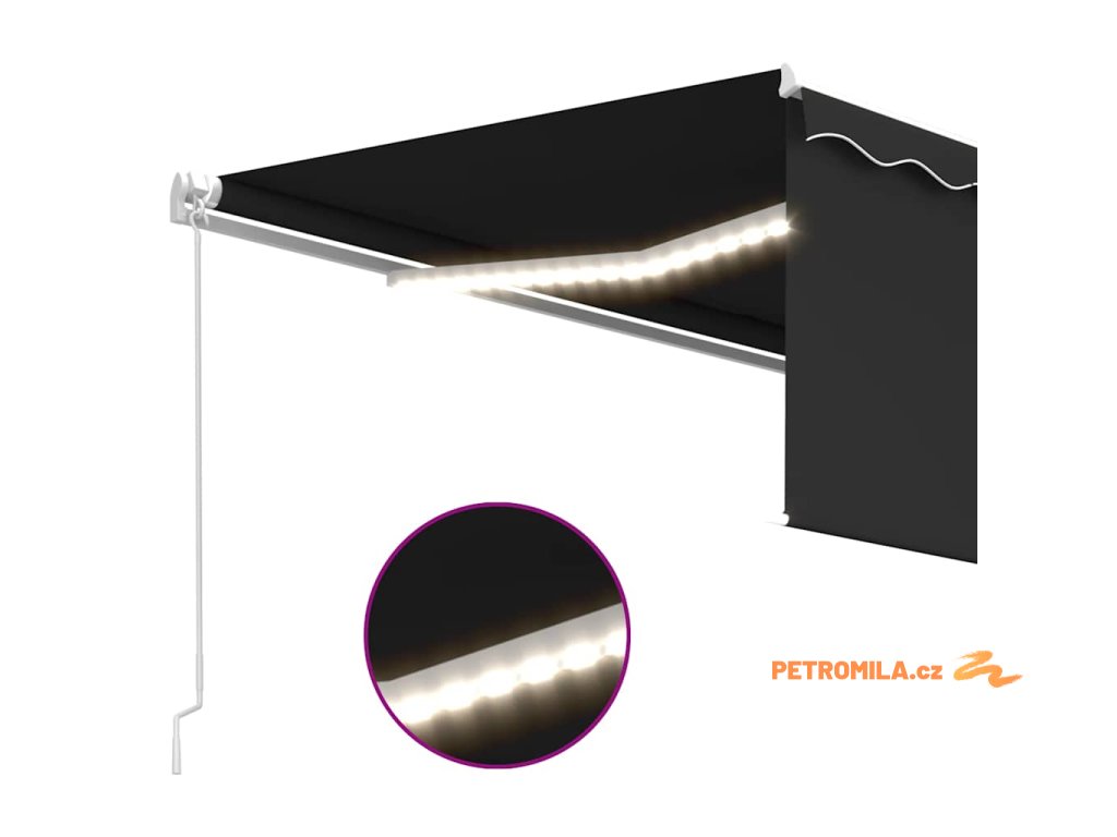 Ručně zatahovací markýza s roletou a LED 4,5 x 3 m antracitová