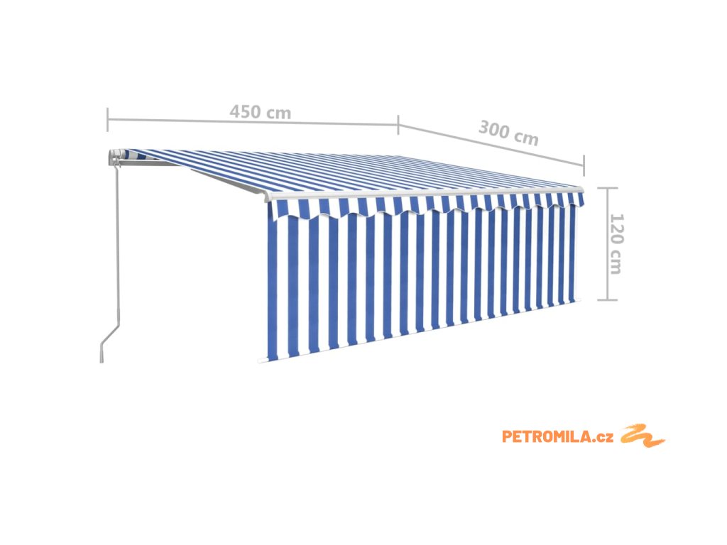 Ručně zatahovací markýza s roletou a LED 4,5 x 3 m modrobílá