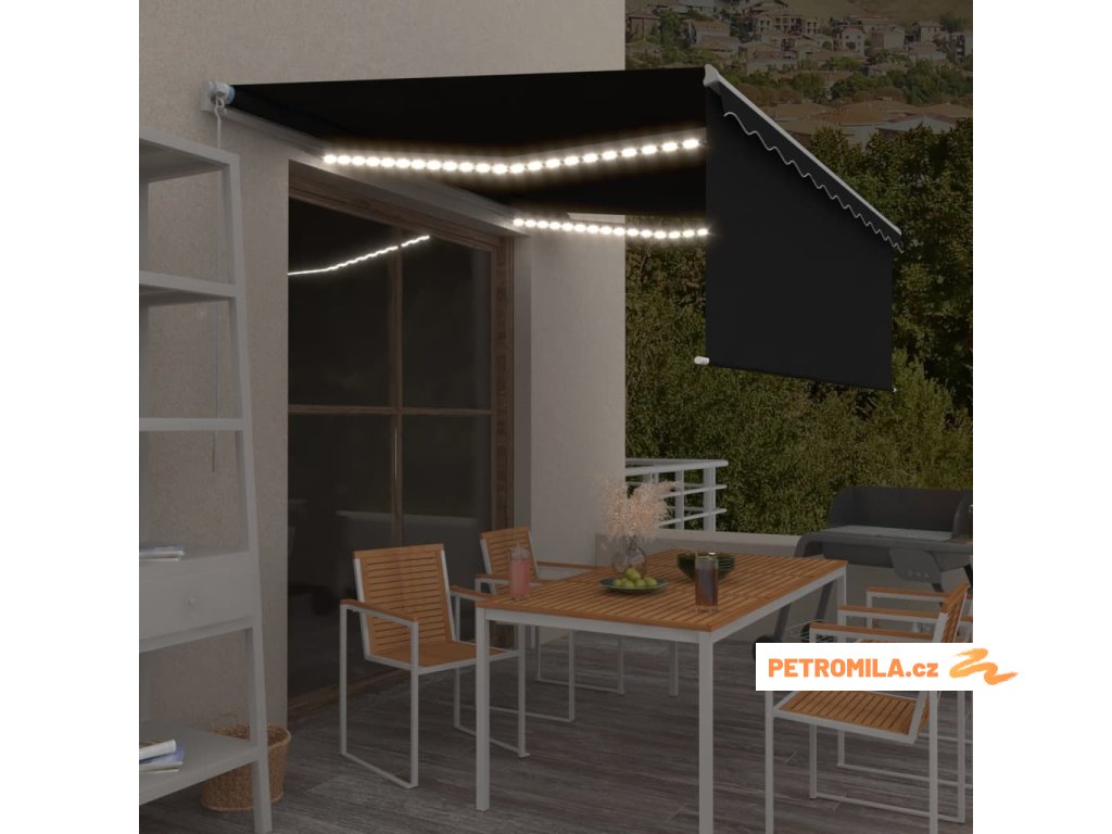 Ručně zatahovací markýza s roletou a LED 4 x 3 m antracitová