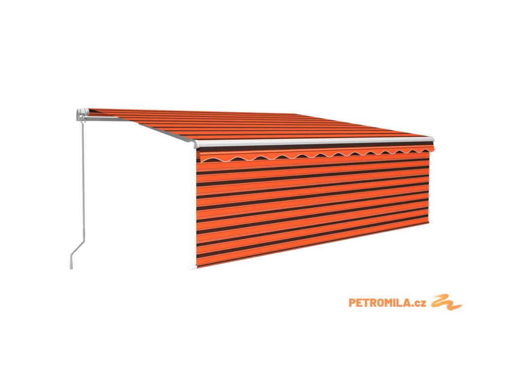 Ručně zatahovací markýza s roletou a LED 4 x 3 m oranžovo-hnědá