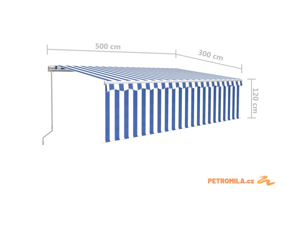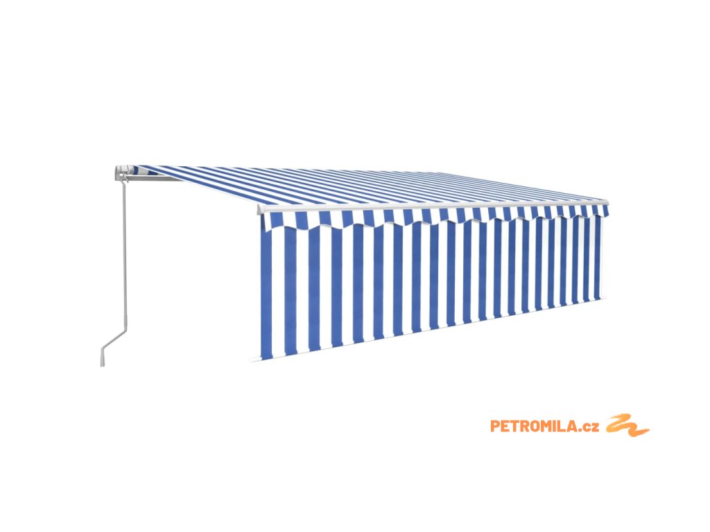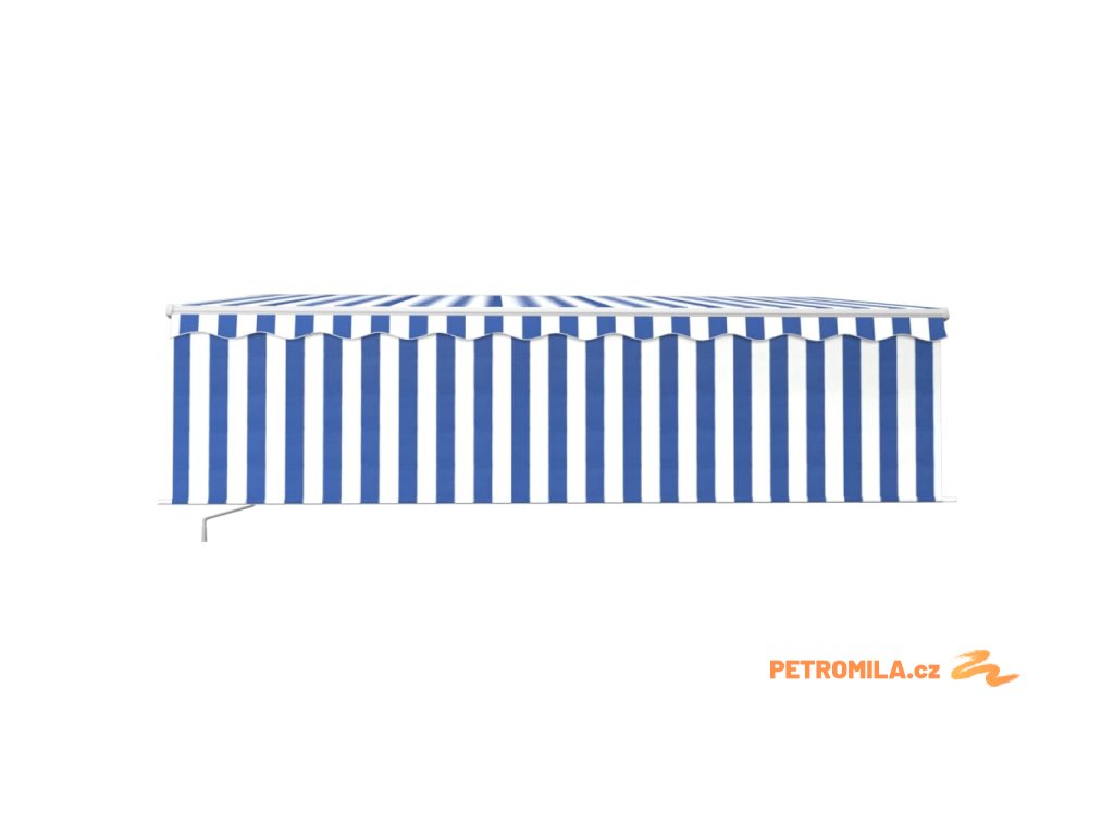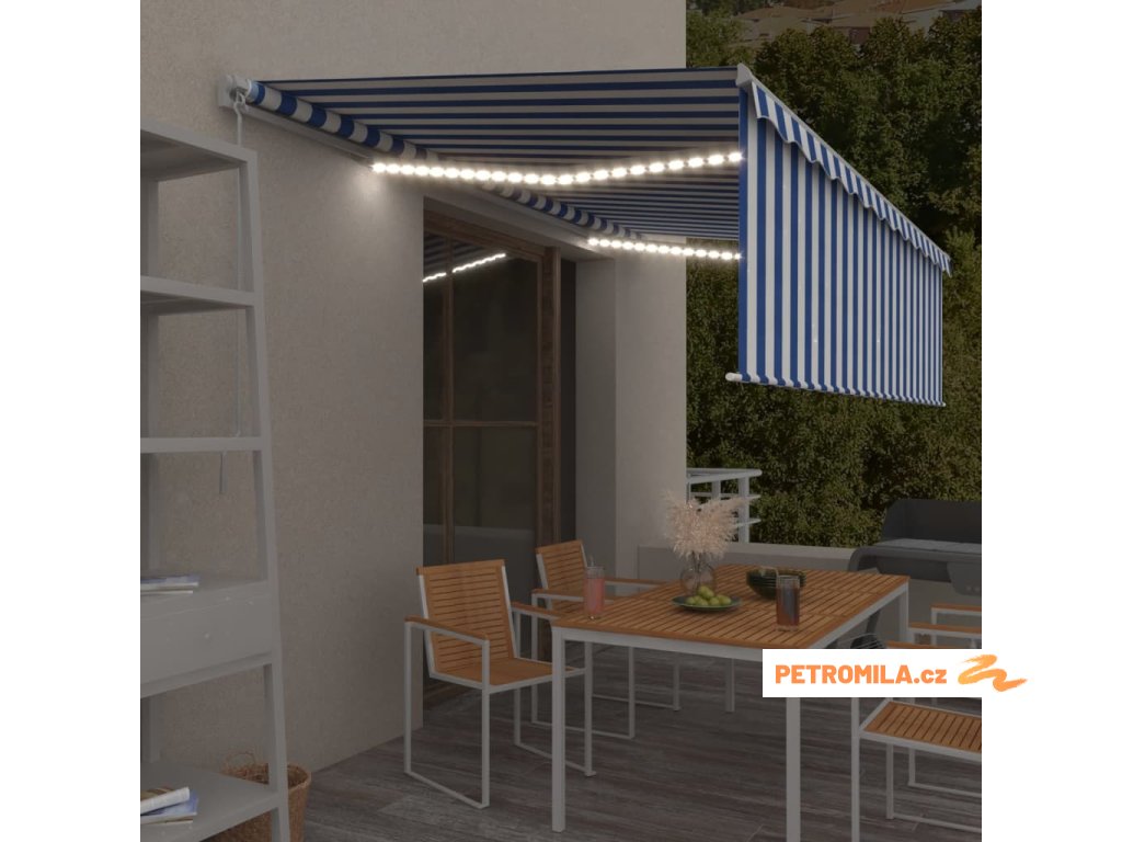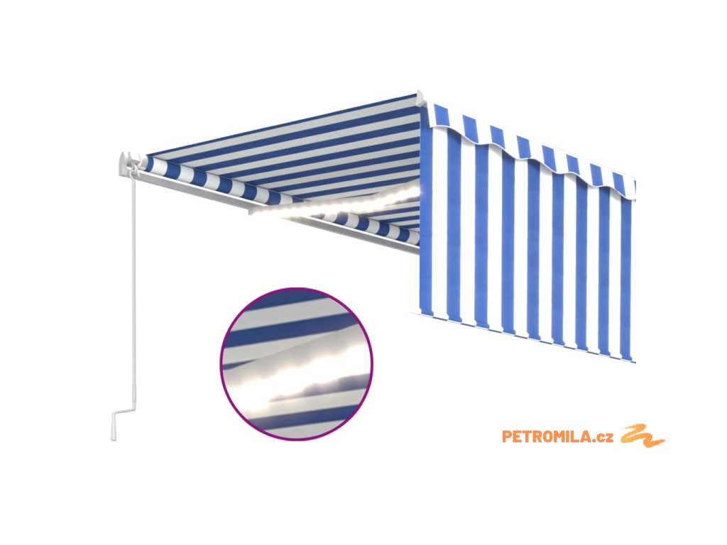 Ručně zatahovací markýza s roletou a LED 5 x 3 m modrobílá