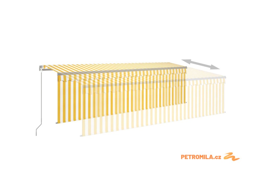 Ručně zatahovací markýza s roletou a LED 5 x 3 m žlutobílá