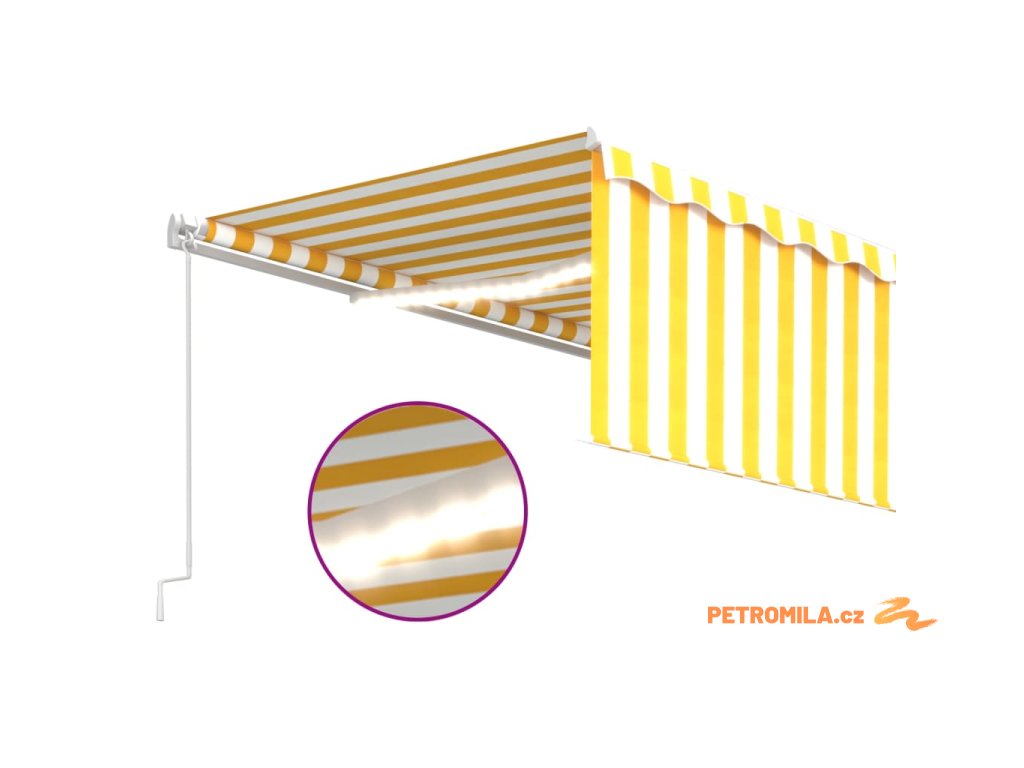 Ručně zatahovací markýza s roletou a LED 5 x 3 m žlutobílá
