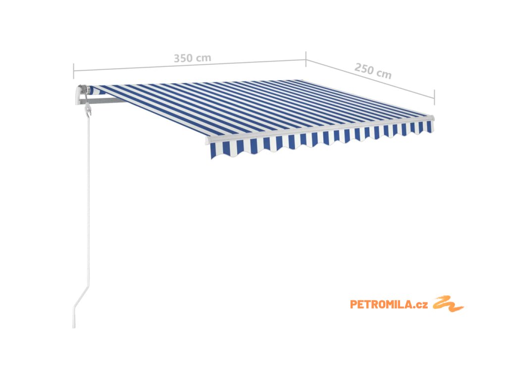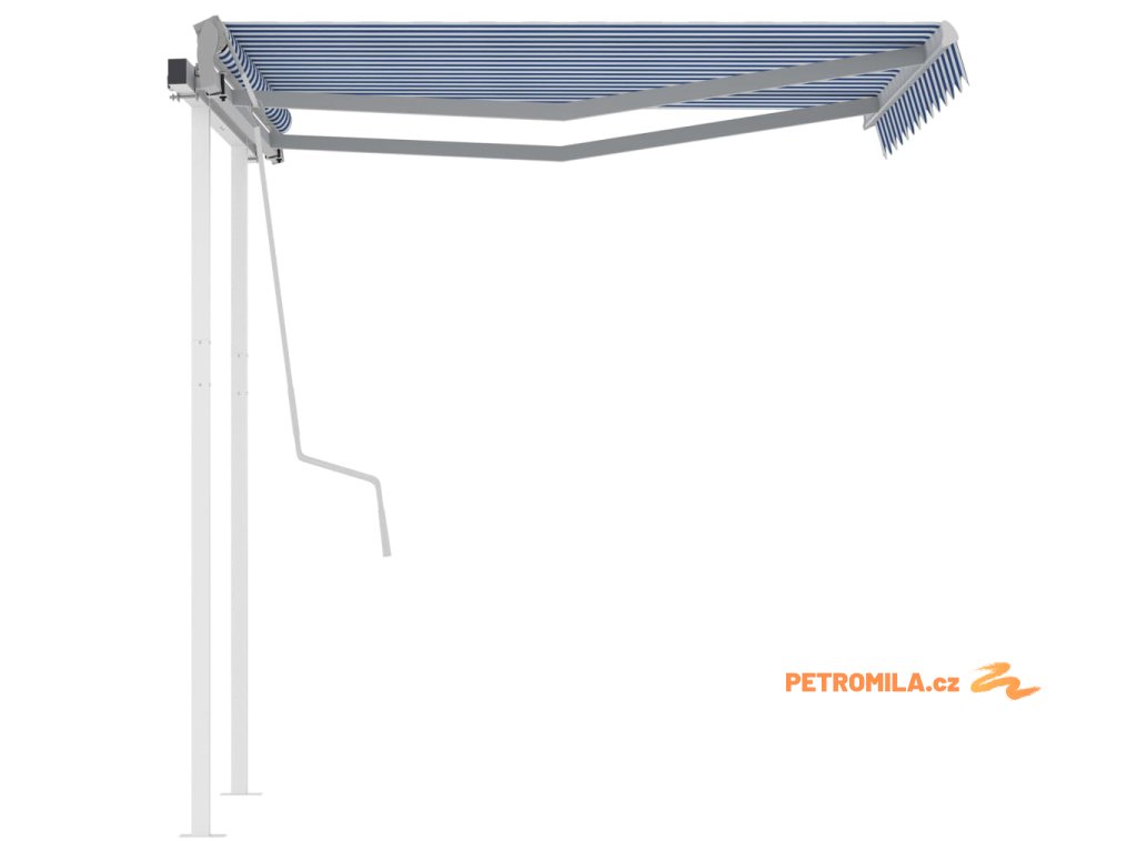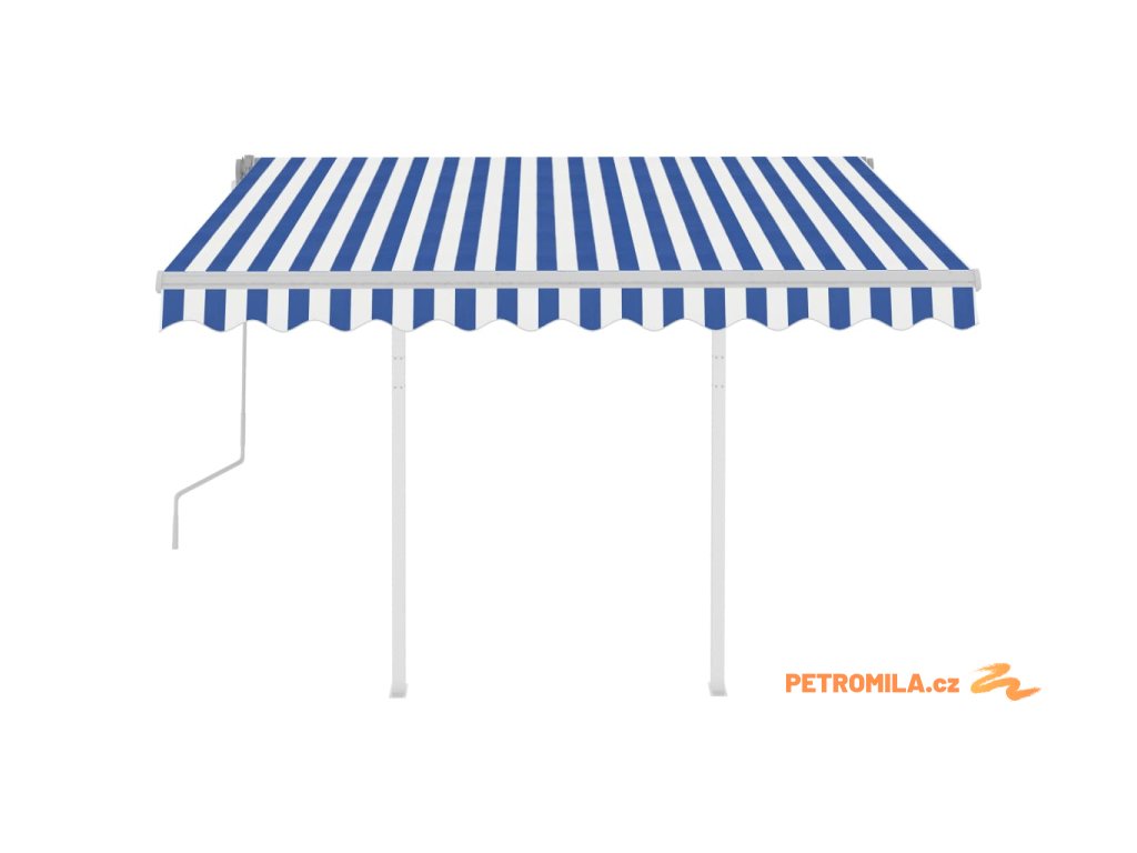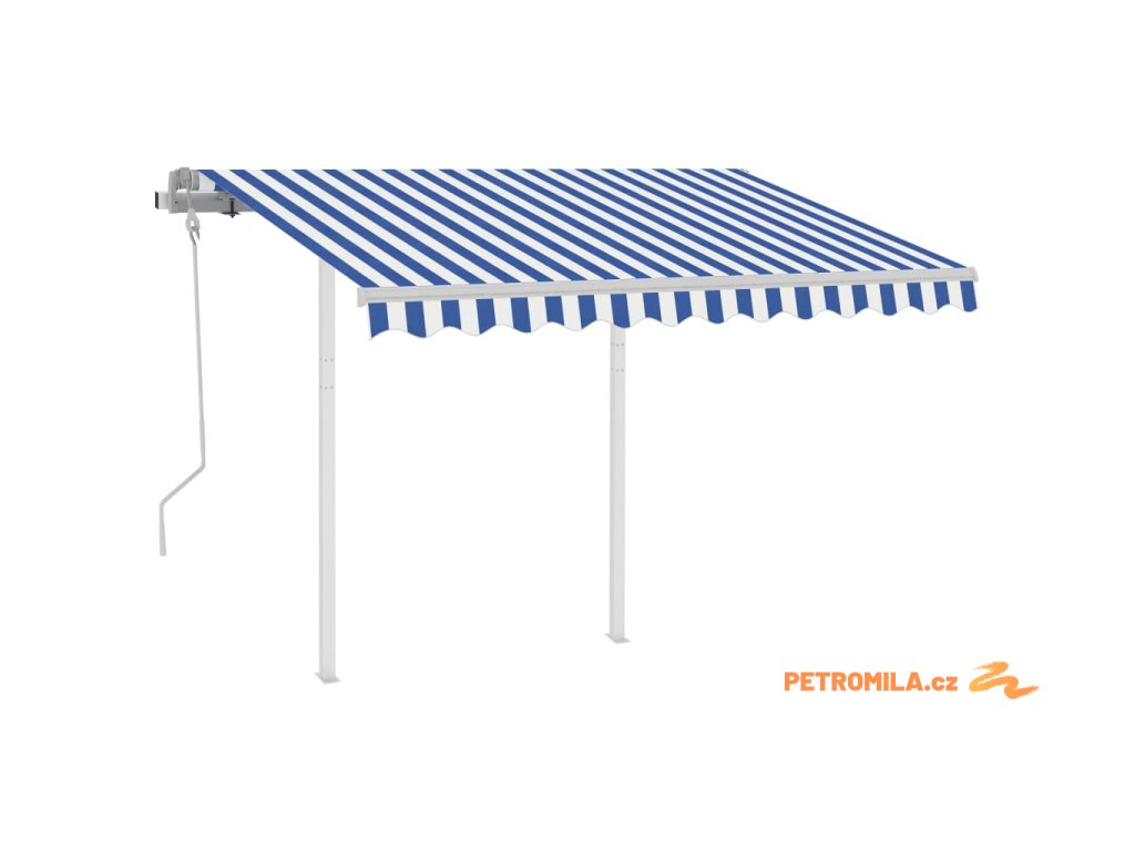Ručně zatahovací markýza se sloupky 3,5 x 2,5 m modrobílá