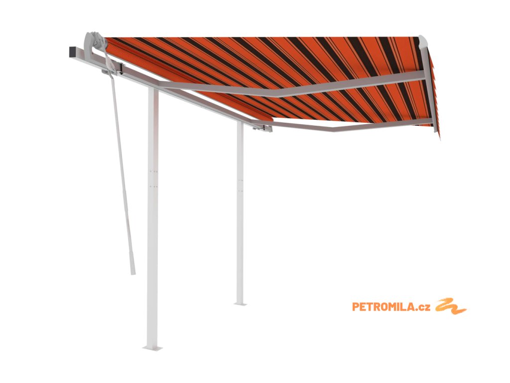 Ručně zatahovací markýza se sloupky 3,5 x 2,5 m oranžovo-hnědá