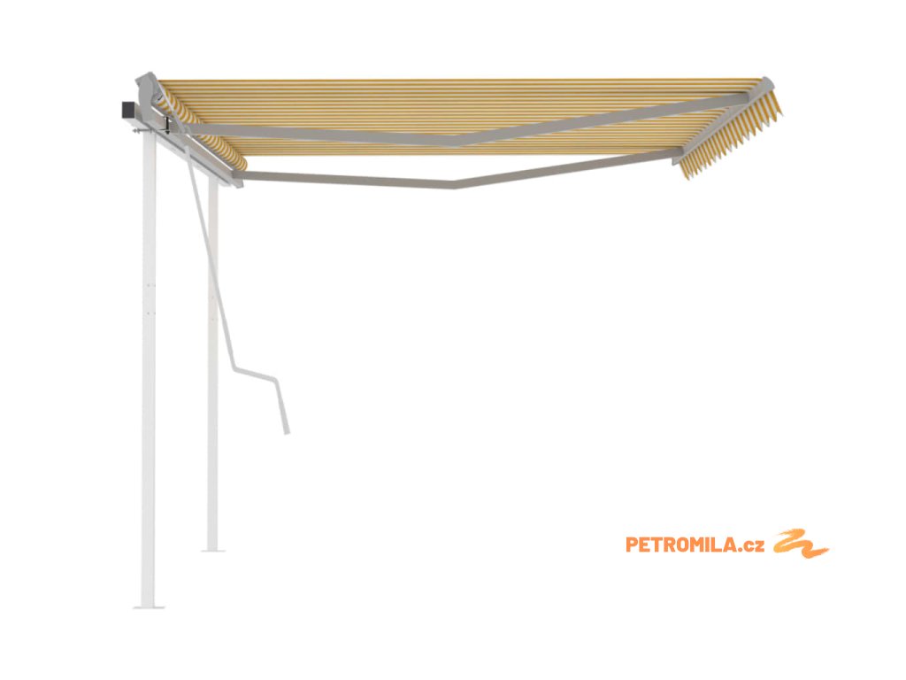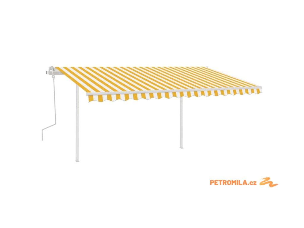 Ručně zatahovací markýza se sloupky 4 x 3,5 m žlutobílá