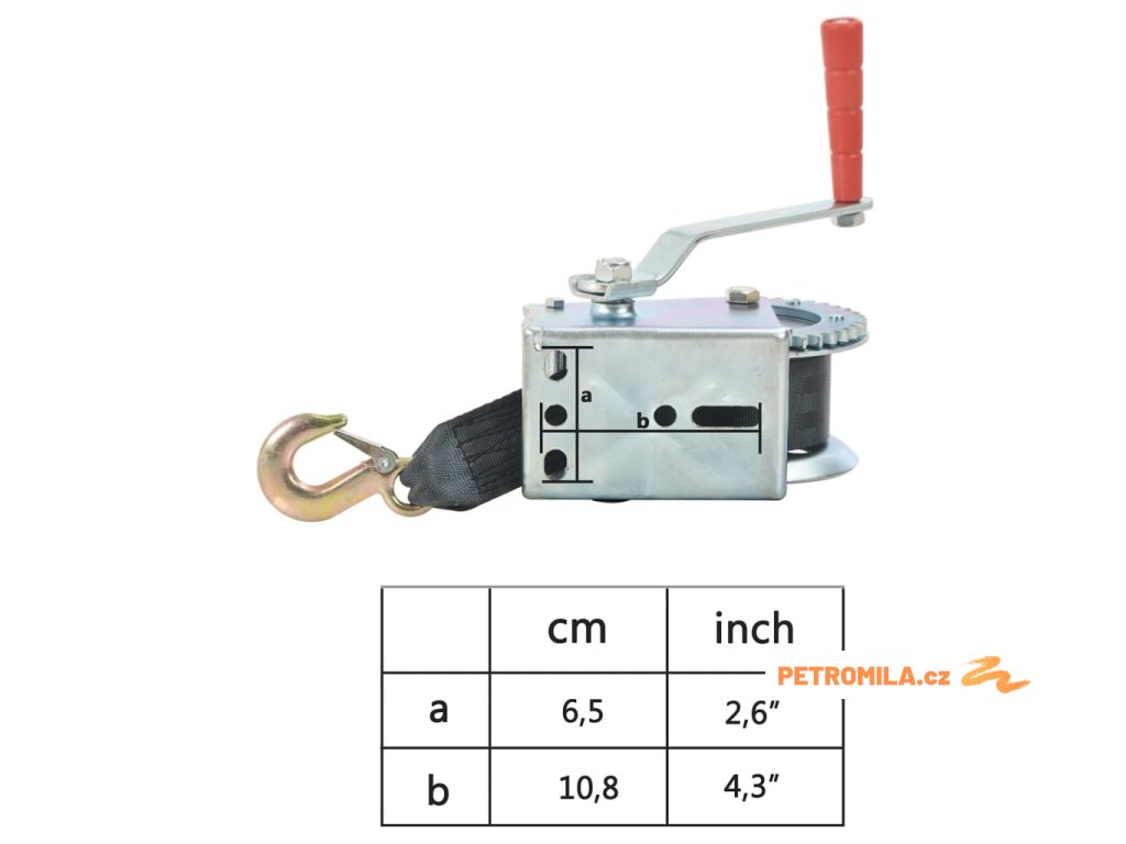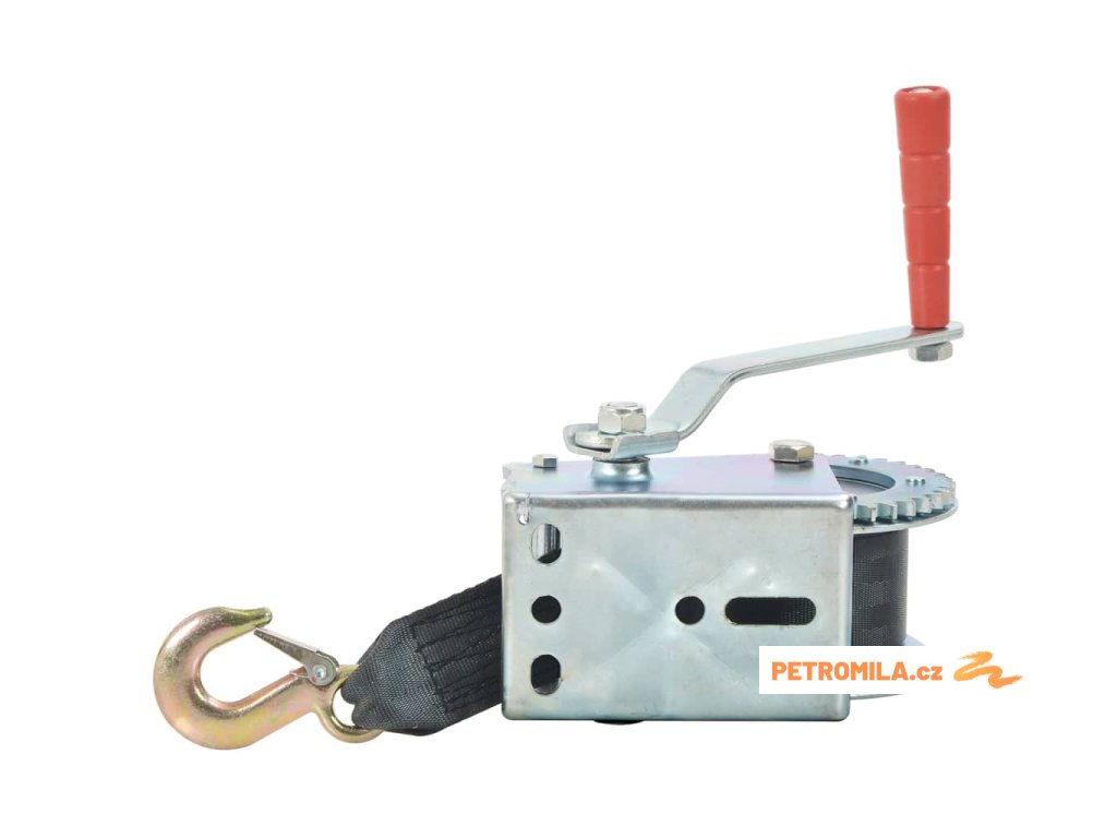 Ruční naviják s tkaným popruhem je ideální pro zdvihání nákladních aut a přívěsů, ale i pro jiné tažné úkony. V našem obchodě naleznete také kompatibilní stojan na naviják přívěsu pro lodě (SKU 90634), jehož zakoupením získáte kompletní set.