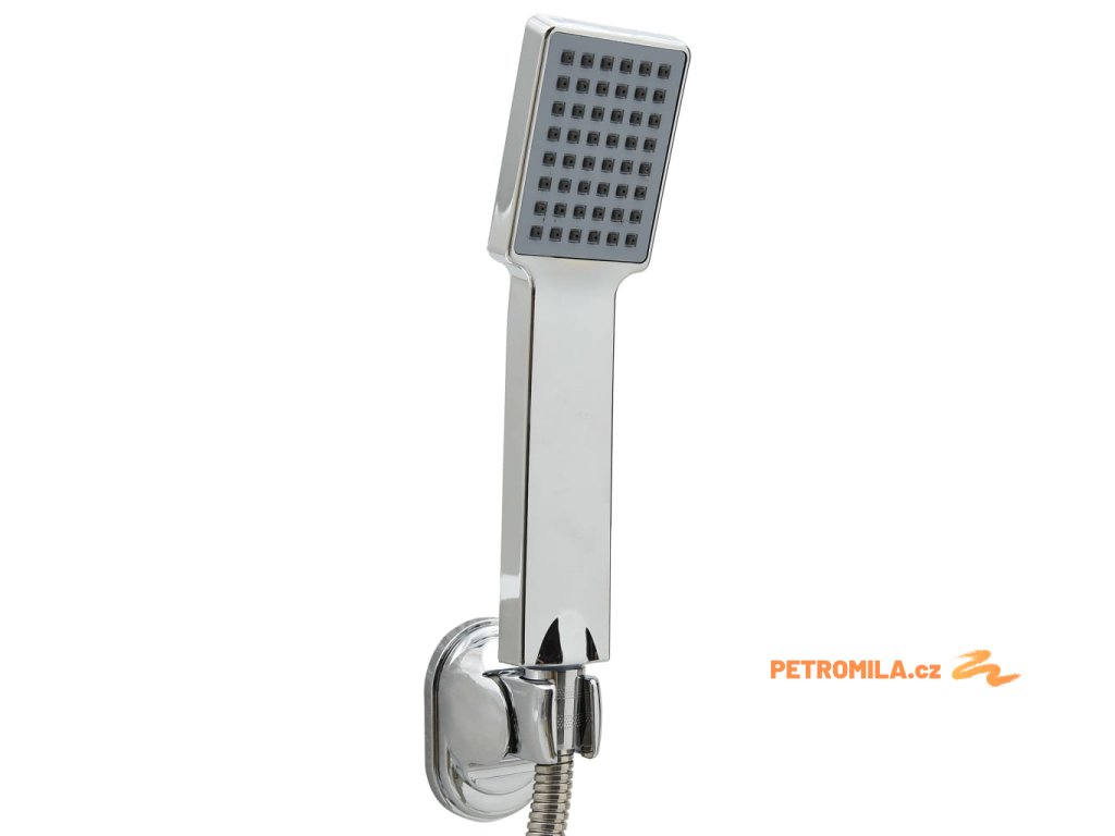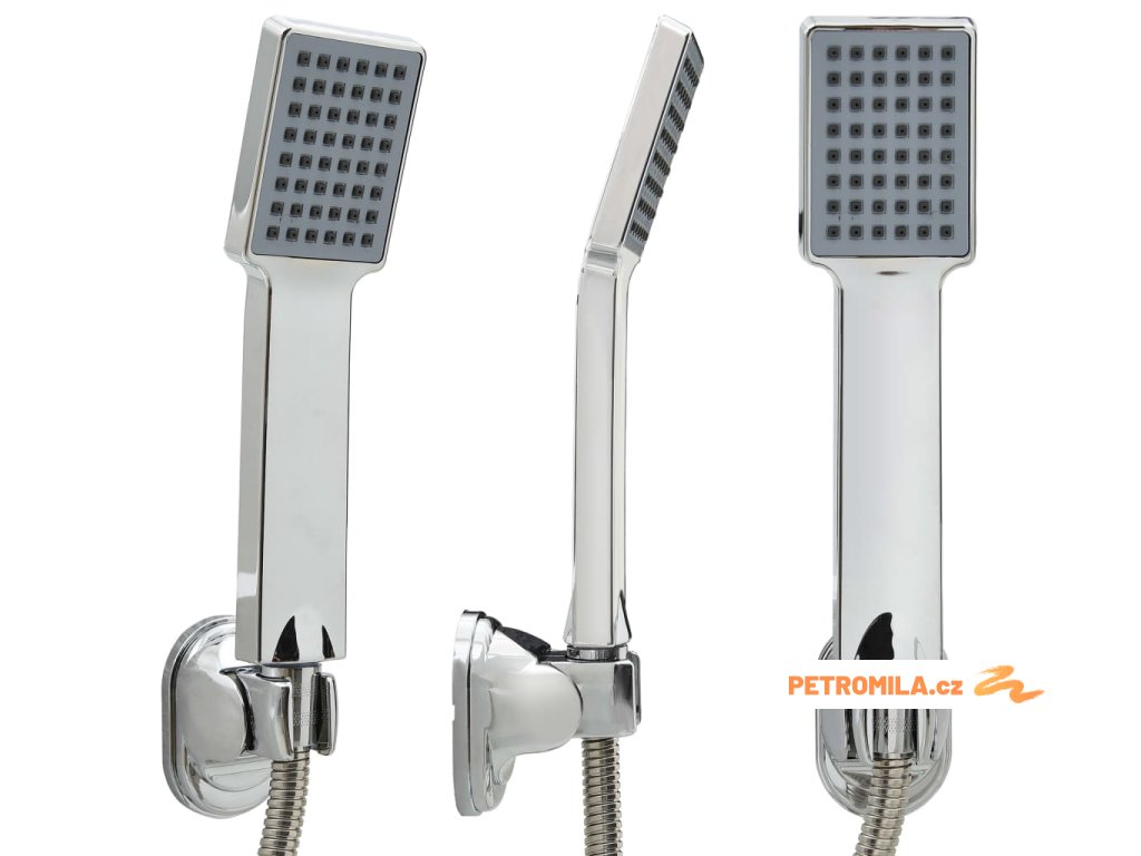 Naše ruční sprcha je vyrobená z plastu s chromovou úpravou. Je vybavená velkým počtem trysek, které poskytují široký postřik pro co nejpohodlnější a osvěžující sprchu. Trysky se snadno čistí. Otočný kloub umožňuje nastavit úhel postřiku a sílu průtoku vody. Součástí setu je také držák na sprchu, který umožňuje praktické zavěšení sprchové hlavice.