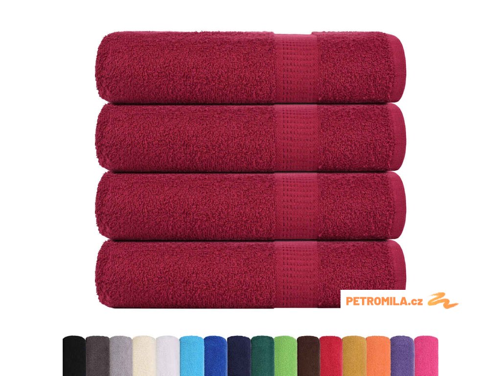 Ručníky na ruce 4 ks bordó 50x100 cm 360 g/m² 100% bavlna