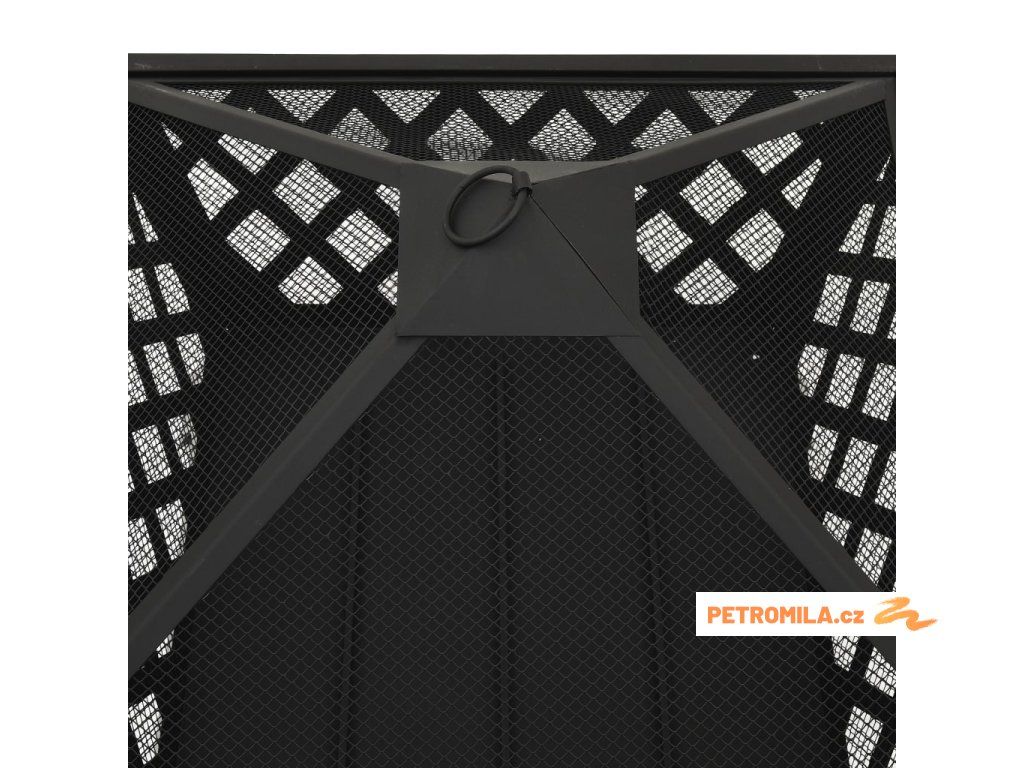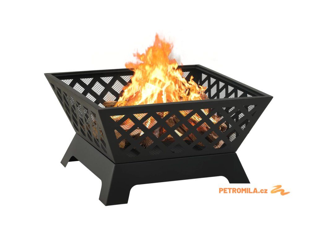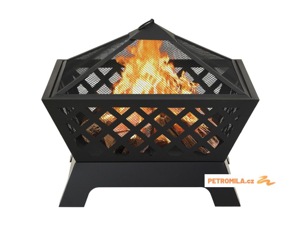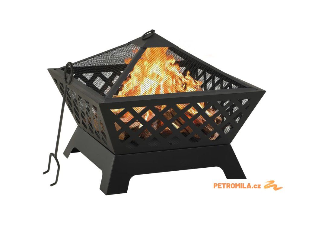 Přenosné ohniště je vyrobené z oceli a skvěle absorbuje a vyzařuje teplo. Má širokou a hlubokou mísu, ve které snadno založíte velký táborák pro celou rodinu. Pletivový kryt vám umožní sledovat hořící oheň a zároveň brání odletování jisker a úlomků, a zajišťuje tak více bezpečí. V pletivovém krytu je též praktický kroužek, za který ho můžete snadno přenášet. Přiložený kovový pohrabáč lze použít jak k sejmutí pletivového krytu, tak k přeskupení palivového dříví.