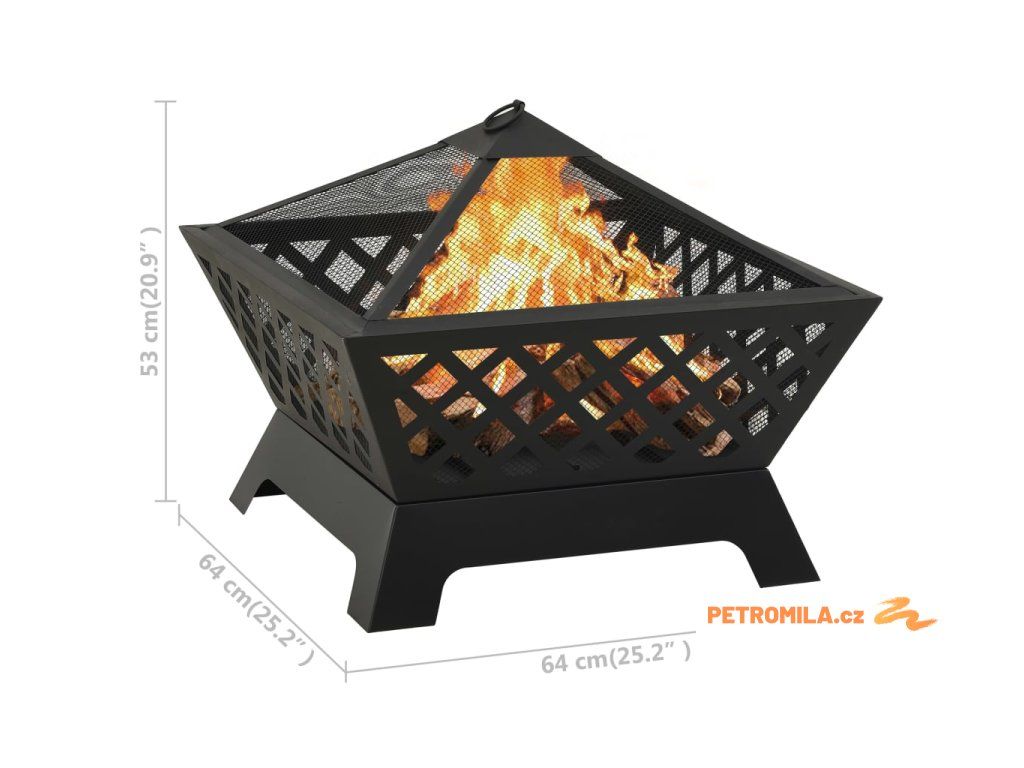 Rustikální přenosné ohniště s pohrabáčem 64 cm XXL ocel