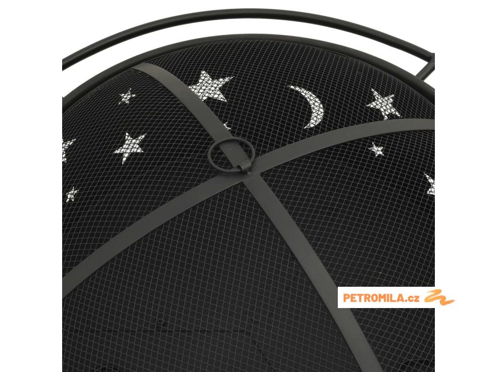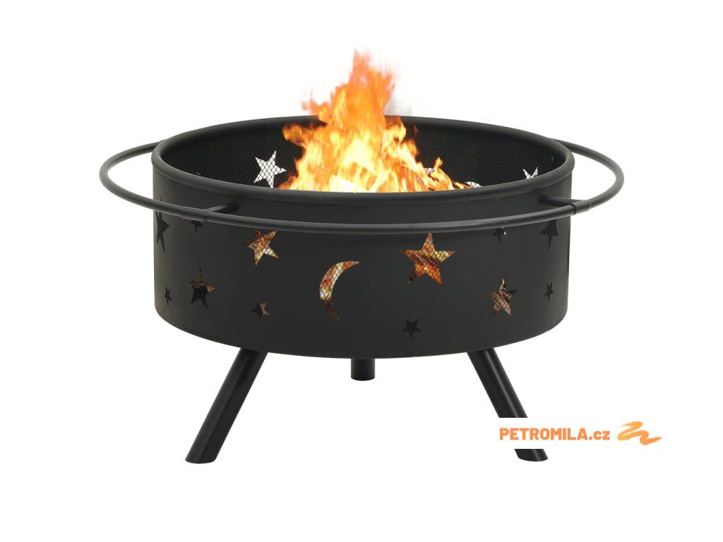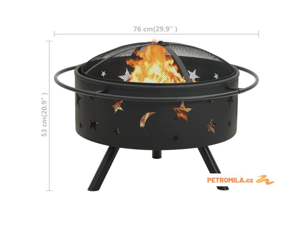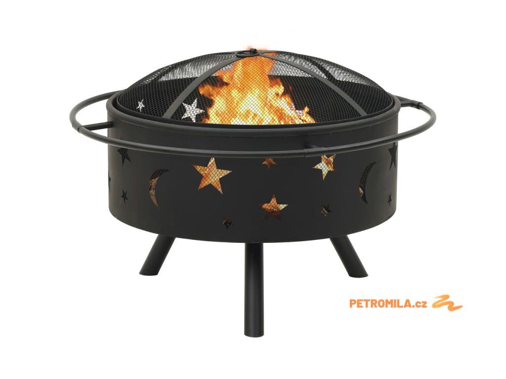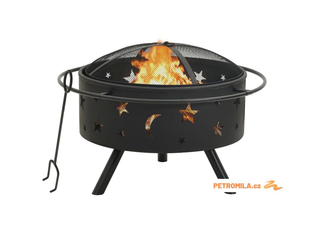 Přenosné ohniště je vyrobené z oceli a skvěle absorbuje a vyzařuje teplo. Má širokou a hlubokou mísu, ve které snadno založíte velký táborák pro celou rodinu. Pletivový kryt vám umožní sledovat hořící oheň a zároveň brání odletování jisker a úlomků, a zajišťuje tak více bezpečí. V pletivovém krytu je též praktický kroužek, za který ho můžete snadno přenášet. Přiložený kovový pohrabáč lze použít jak k sejmutí pletivového krytu, tak k přeskupení palivového dříví.