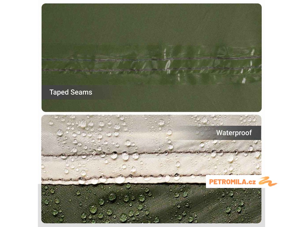 - Vodoodporný materiál: Díky vodoodolnému polyesteru tě stan udržuje v suchu i při dešti nebo vlhkých ránech. Můžeš si v klidu užívat přírodu, i když venku prší, a polyester je lehký, takže se s ním snadno manipuluje.