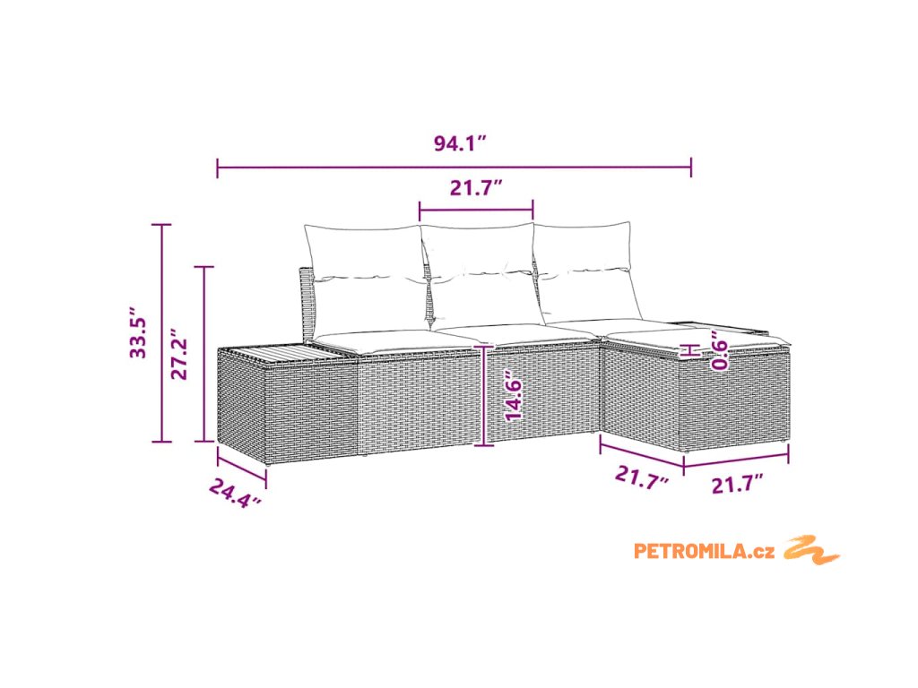 Představ si tu moderní venkovní pohovku v setu čtyř kusů! Tato super sedačka přináší spoustu nových možností pro tvé venkovní trávení času. Vypadá skvěle s čistými liniemi a jednoduchou elegancí. Obdélníkový tvar a odolné vlastnosti proti počasí z ní dělají nezbytnou věc pro setkání nebo prostě jen odpočinek na tvé zahradě či terase.