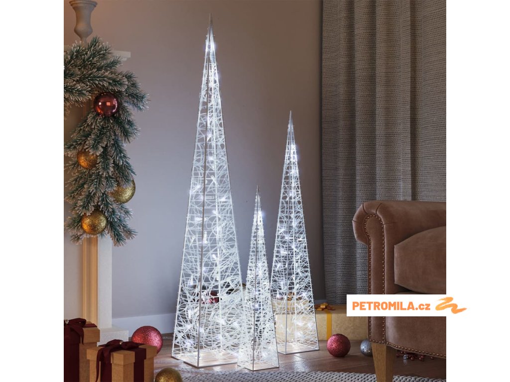 Sada akrylových světelných LED kuželů studená bílá 60/90/120 cm