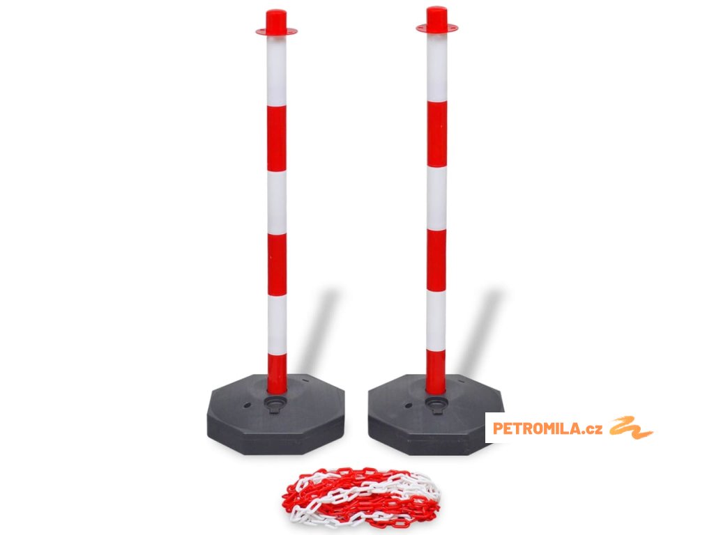 Balení obsahuje 2 dopravní sloupky a 10 m plastového řetězu.