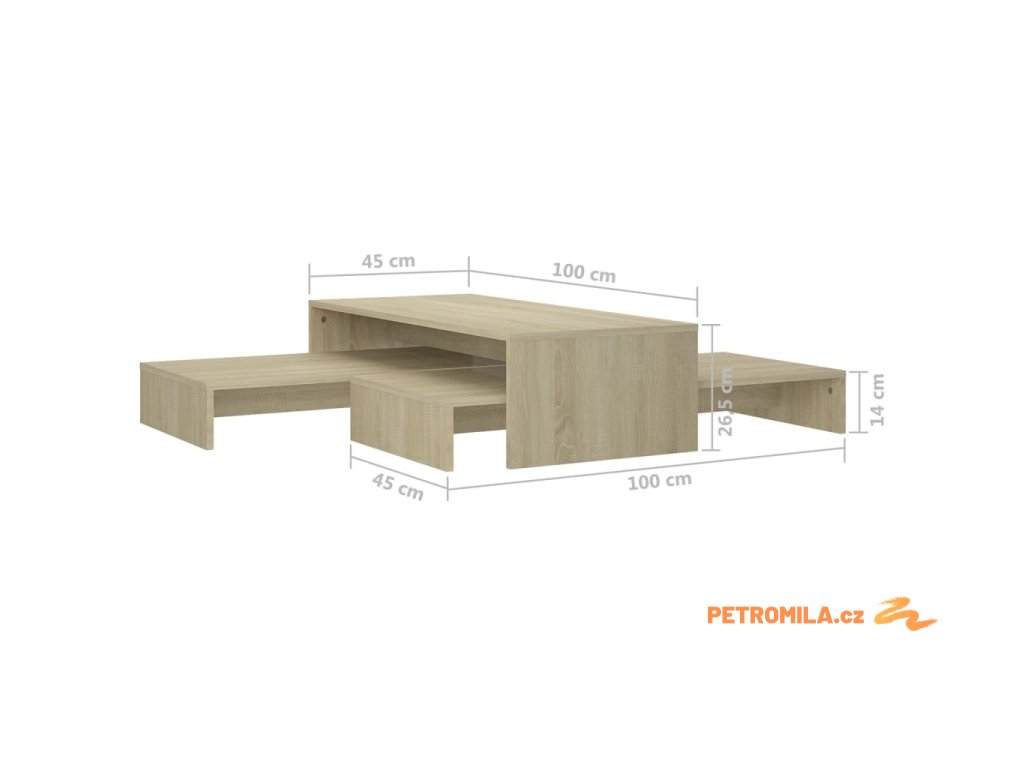 - Rozměry nízkého stolku: 100 x 45 x 14 cm (Š x H x V)