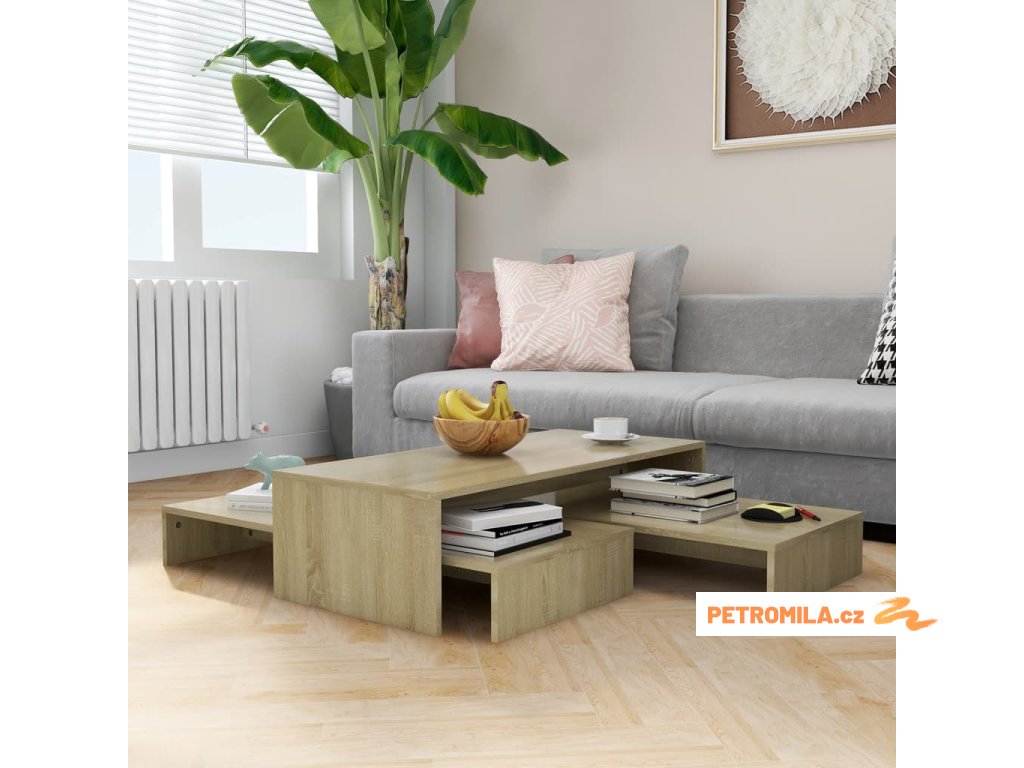 Sada konferenčních stolků dub sonoma 100x100x26,5 cm kompozit