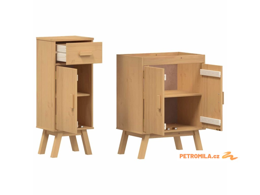 Tato sada dřevěného koupelnového nábytku je fakt skvělé spojení moderního designu a praktického využití. S jednoduchými liniemi a zaměřením na funkčnost je ideální pro každého, kdo chce oživit svou koupelnu. Vyrobená z masivního borového dřeva, má příjemnou hnědou barvu, která se hodí k různým stylům. Moderní atmosféra z ní dělá super volbu pro minimalistické koupelny, přináší do vašeho prostoru jak styl, tak účel.