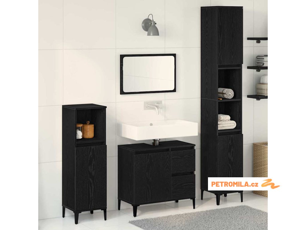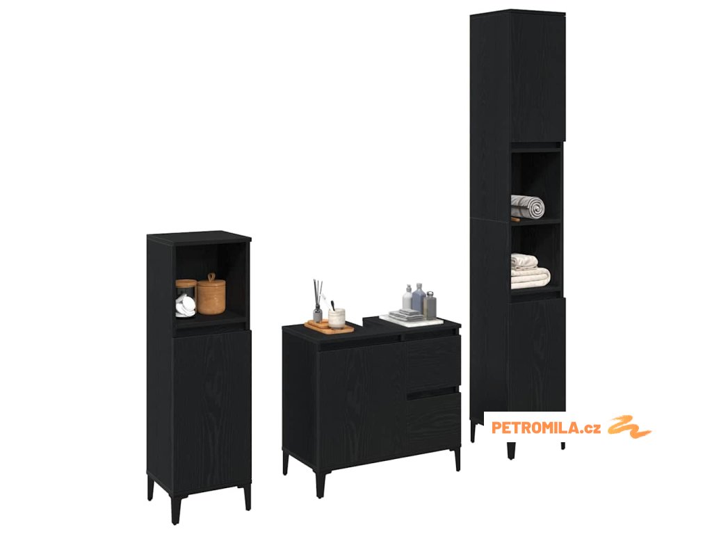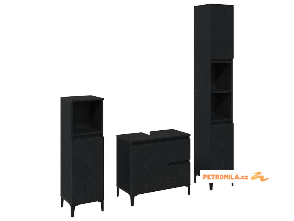 Sada koupelnového nábytku 3 pcs Černá 30 x 30 x 180 cm