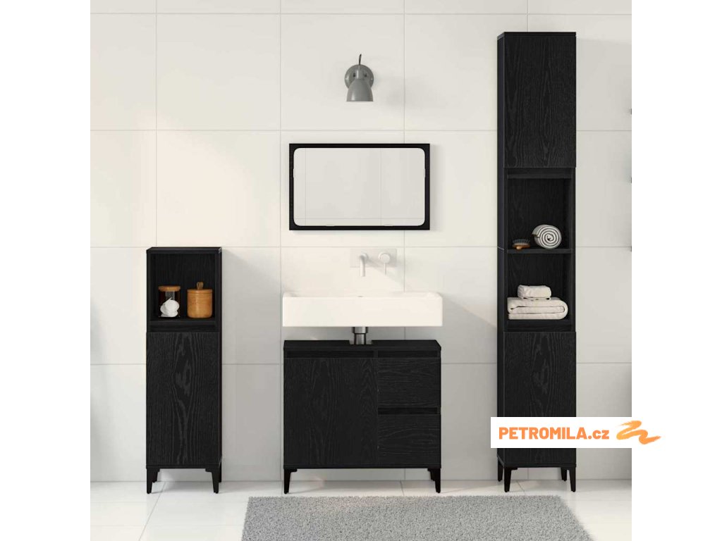 Tenhle moderní koupelnový nábytek je nejen stylový, ale taky praktický způsob, jak uspořádat všechny tvoje koupelnové poklady. S elegantním minimalistickým vzhledem se hodí do jakéhokoli současného dekoru. Máš tady příjemnou kombinaci zásuvek a polic, takže spoustu úložného prostoru pro udržení pořádku a čistoty v koupelně. A kousek vyrobený z kompozitního dřeva zajišťuje, že bude odolný i hezky vypadat.