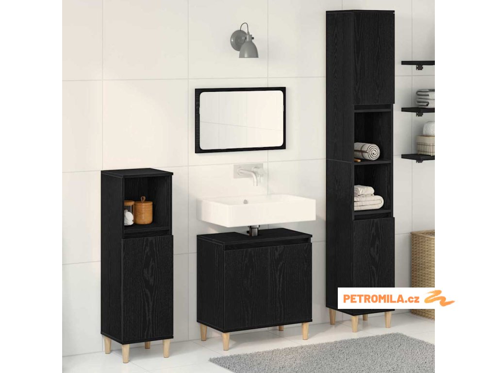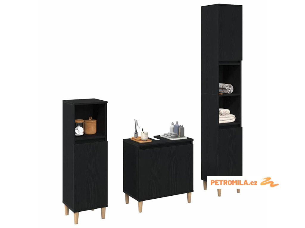 Sada koupelnového nábytku 3 pcs Černá 30 x 30 x 180 cm