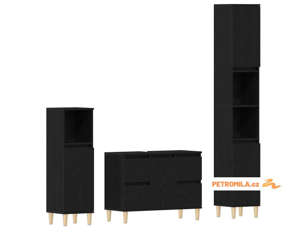 Sada koupelnového nábytku 3 pcs Černá 30 x 30 x 180 cm