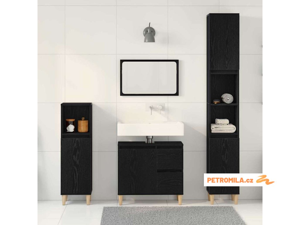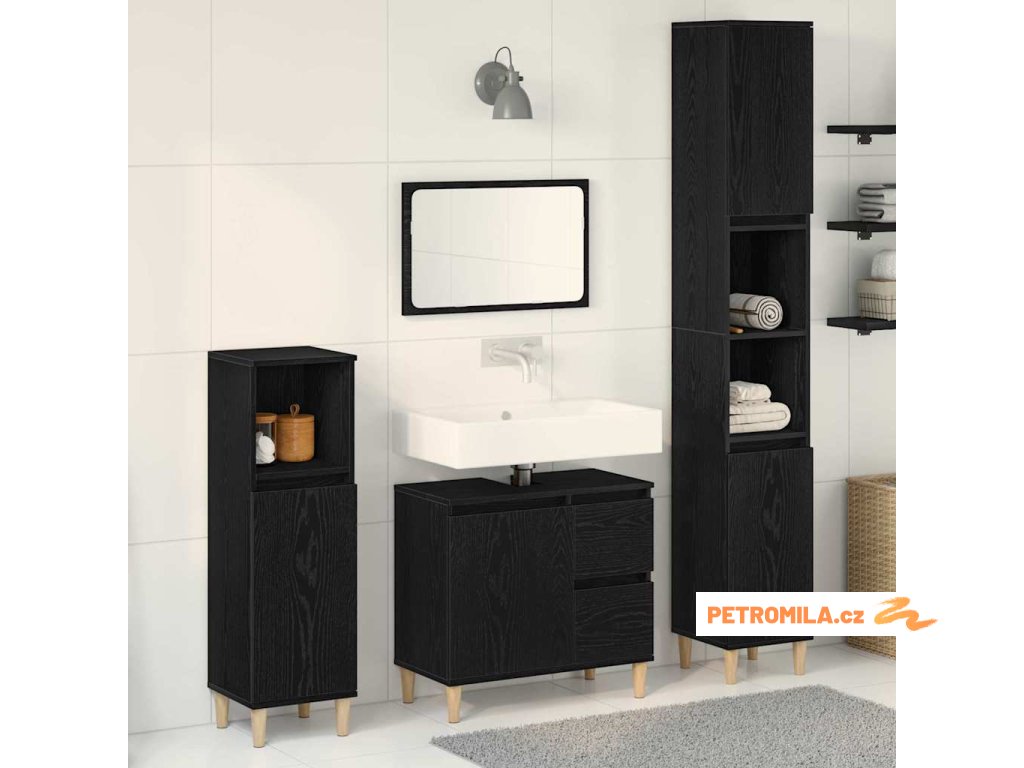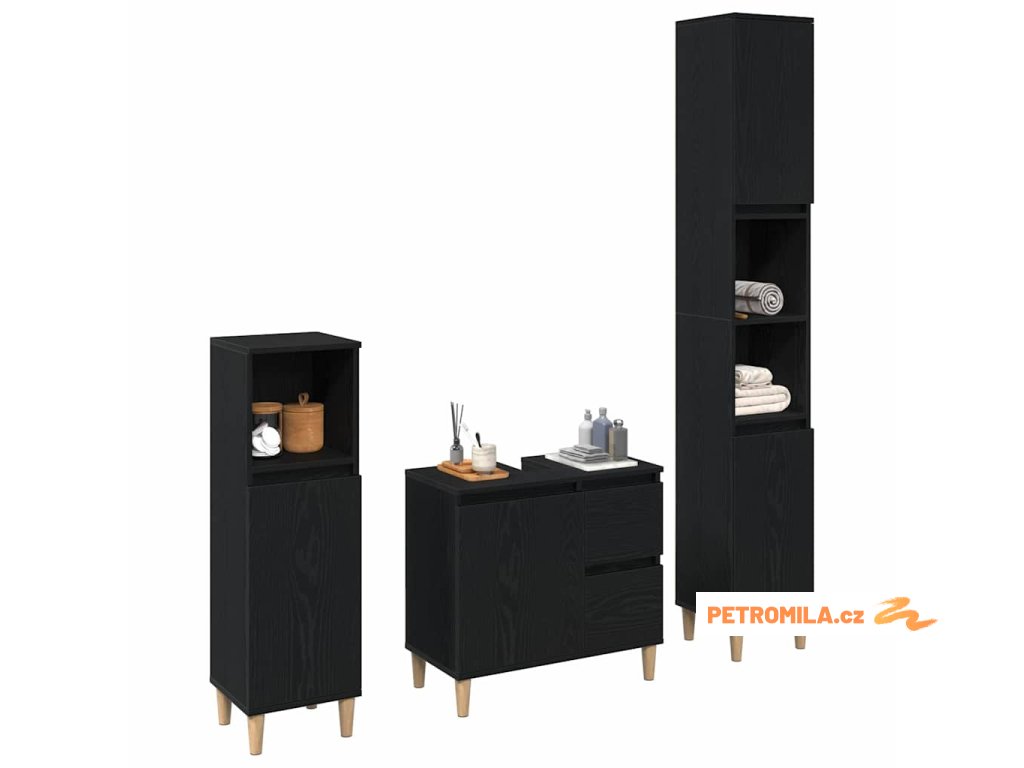 Sada koupelnového nábytku 3 pcs Černá 30 x 30 x 180 cm