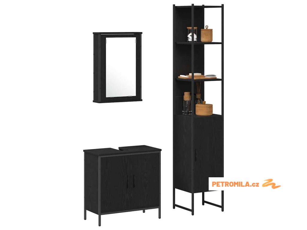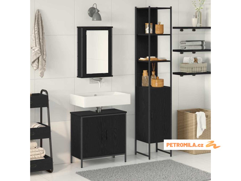 Sada koupelnového nábytku 3 pcs Černá 33 x 33 x 185.5 cm