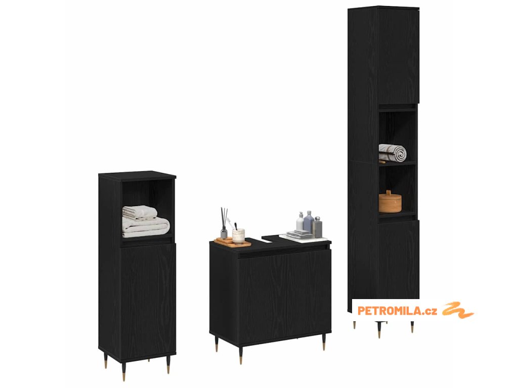 Sada koupelnového nábytku 3 pcs Černý dub 30 x 30 x 190 cm