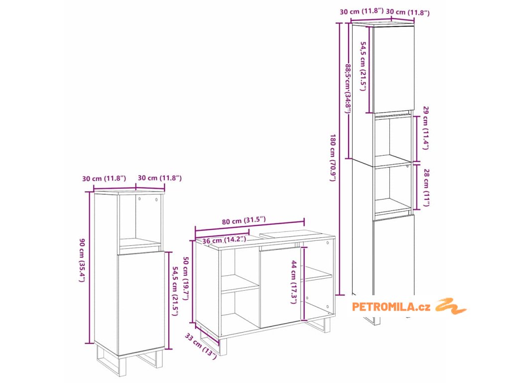 Sada koupelnového nábytku 3 pcs Hnědá 30 x 30 x 180 cm