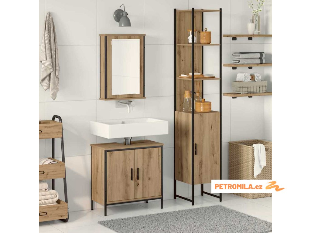 - Hořký prostor: Sada má police z téhož inženýrského dřeva, které ti nabízejí dostatek místa. Tyto flexibilní police unesou všechno od toaletních potřeb po ručníky, takže tvoje koupelna zůstane hezky uklizená.