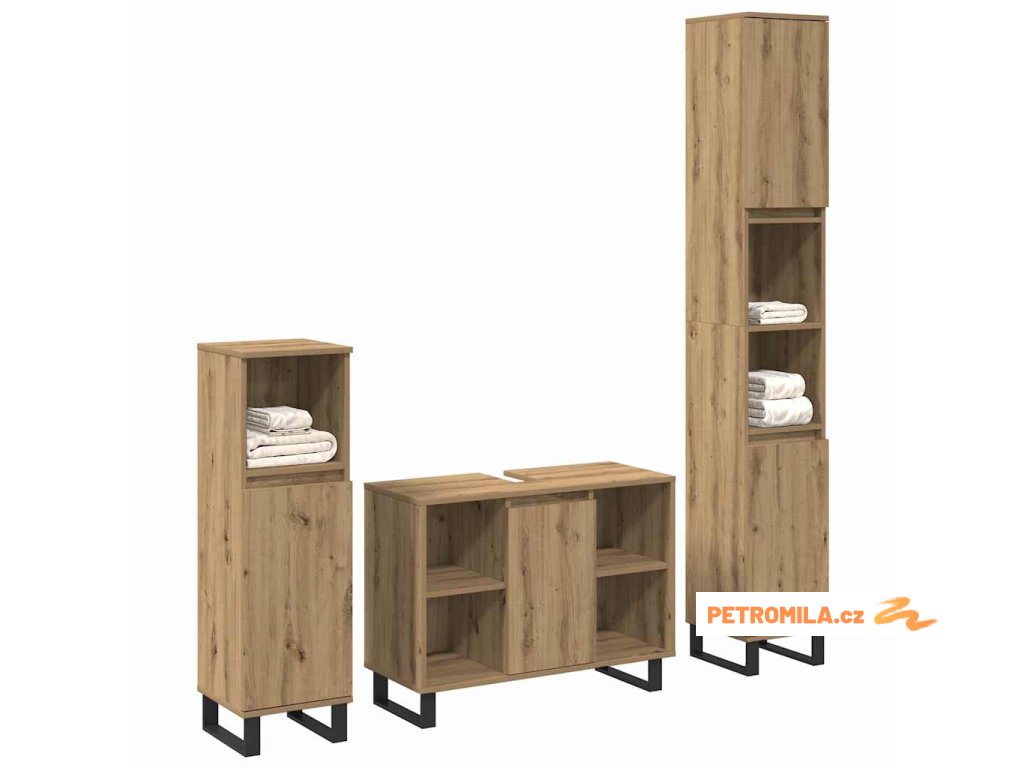 - Určení použití Navrženo pro vnitřní použití, souprava je pro ty, co hledají elegantní a funkční koupelnové řešení. Ať už na kosmetické produkty, nebo na úložné koše, každá skříňka splní své úkoly.