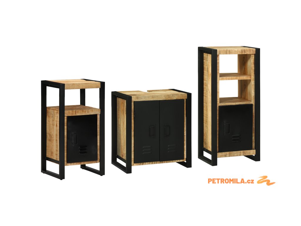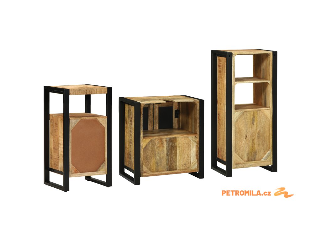 Sada koupelnového nábytku 3 pcs Hnědá Masivní mangové dřevo