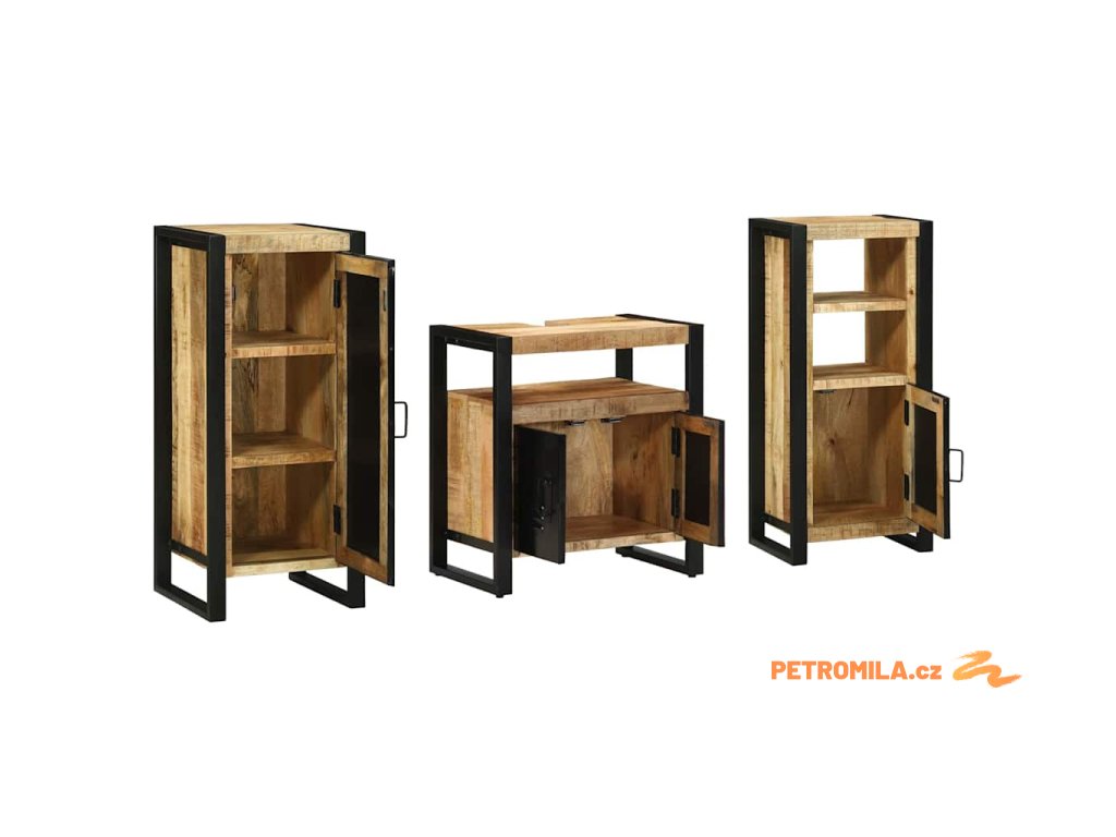 Tahle koupelnová skříňka je navržená tak, aby dodala každému prostoru trochu stylu a zároveň plnila užitečnou funkci. Sada obsahuje tři jedinečné skříňky, z nichž každá má něco navíc, suitable for co zvyšuje jak styl, tak funkci. Má robustní železné nohy a texturovaný povrch, což jí dává industriální kouzlo, ideální pro městské lofty nebo moderní domy. Skříňky jsou skvělým centrálním bodem, který spojuje praktičnost s elegancí.