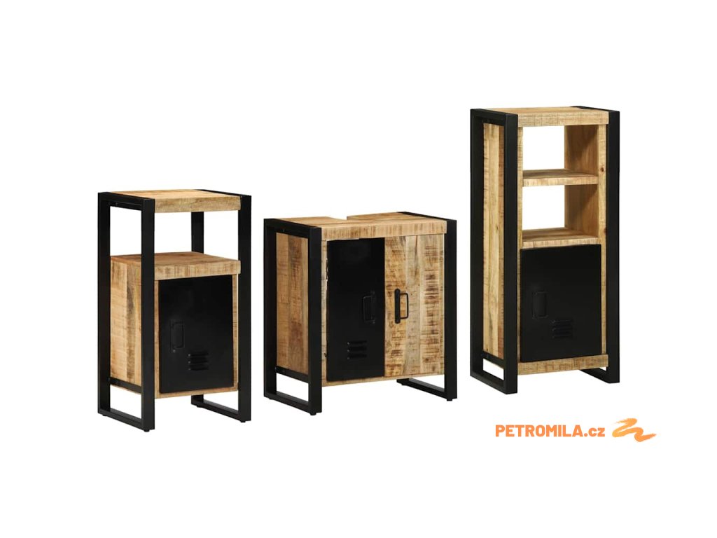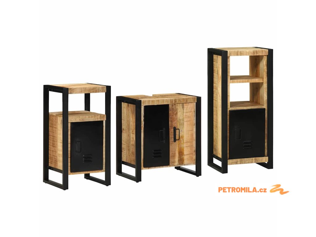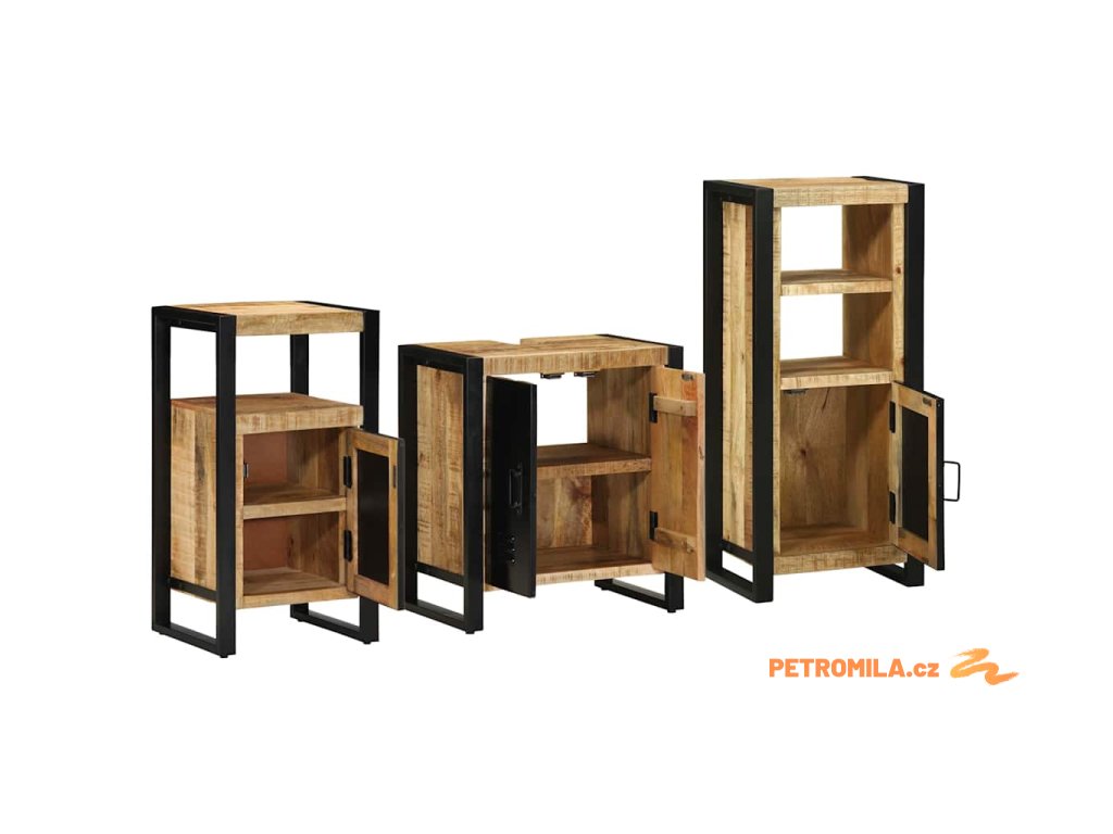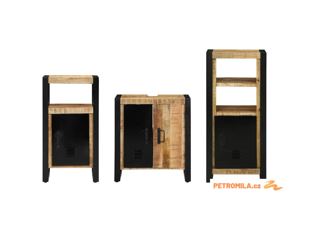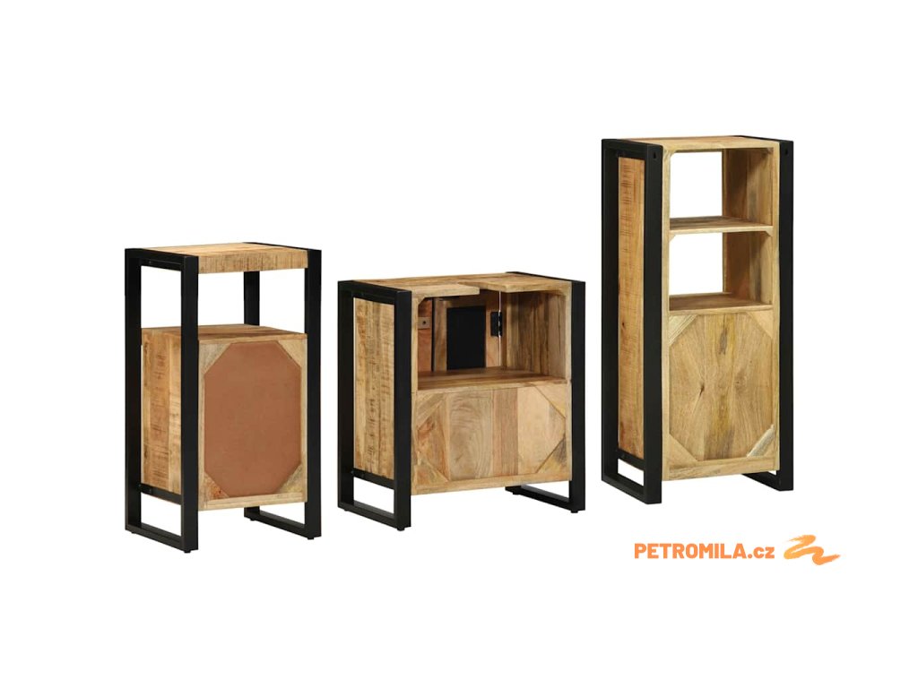 Sada koupelnového nábytku 3 pcs Hnědá Masivní mangové dřevo