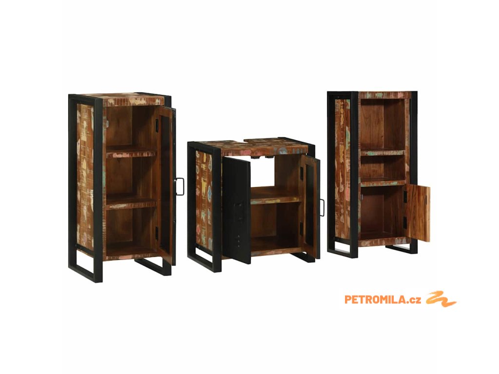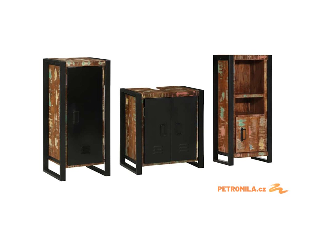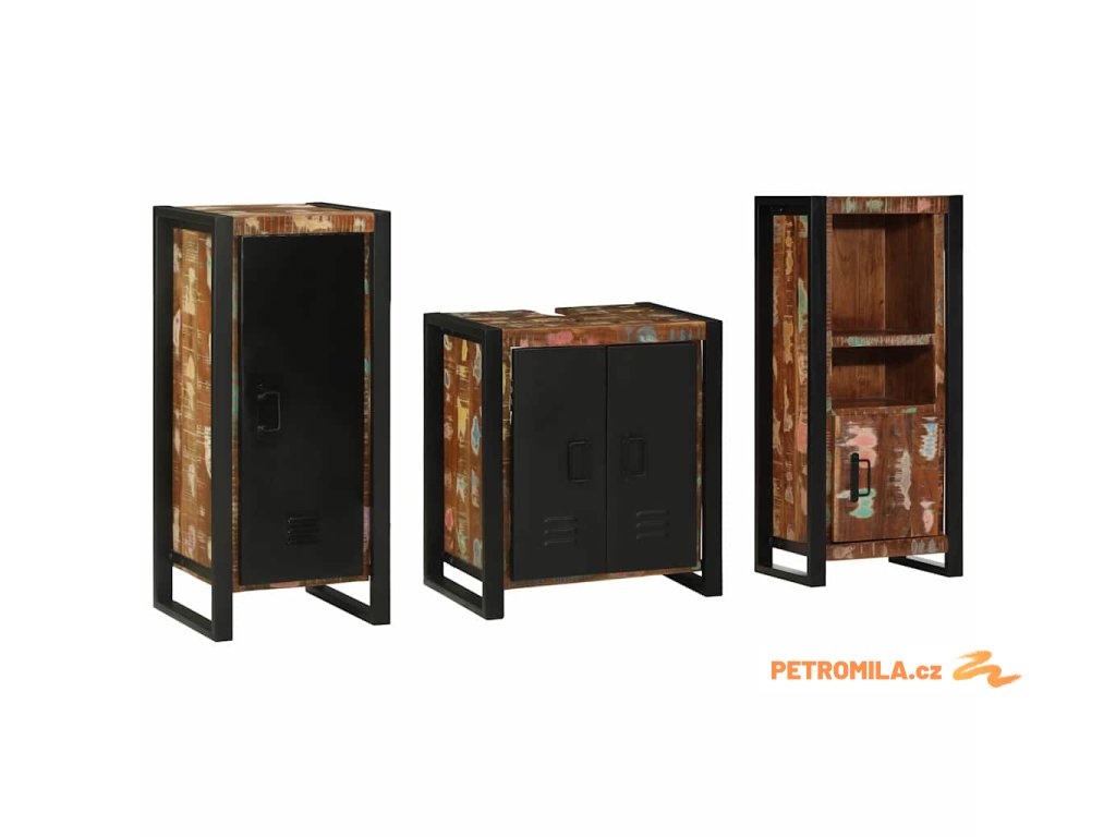 Sada koupelnového nábytku 3 pcs Masivní obnovované dřevo