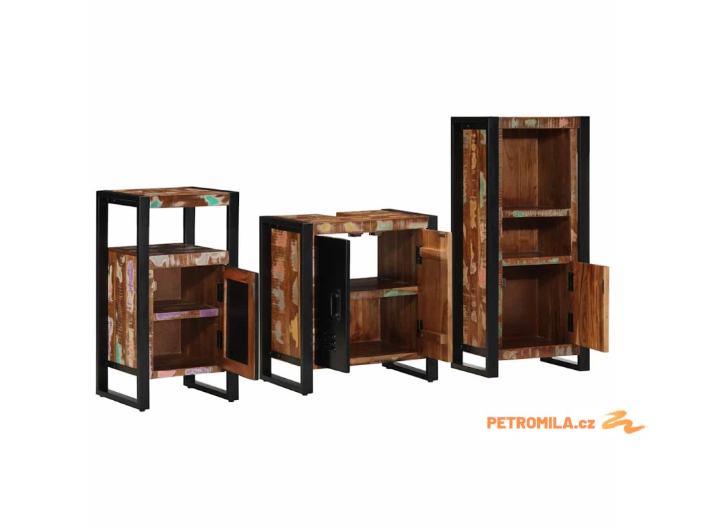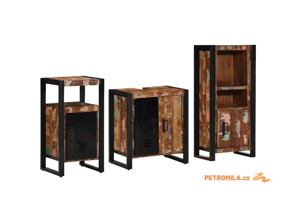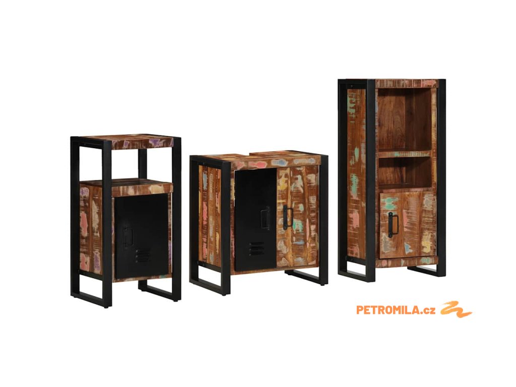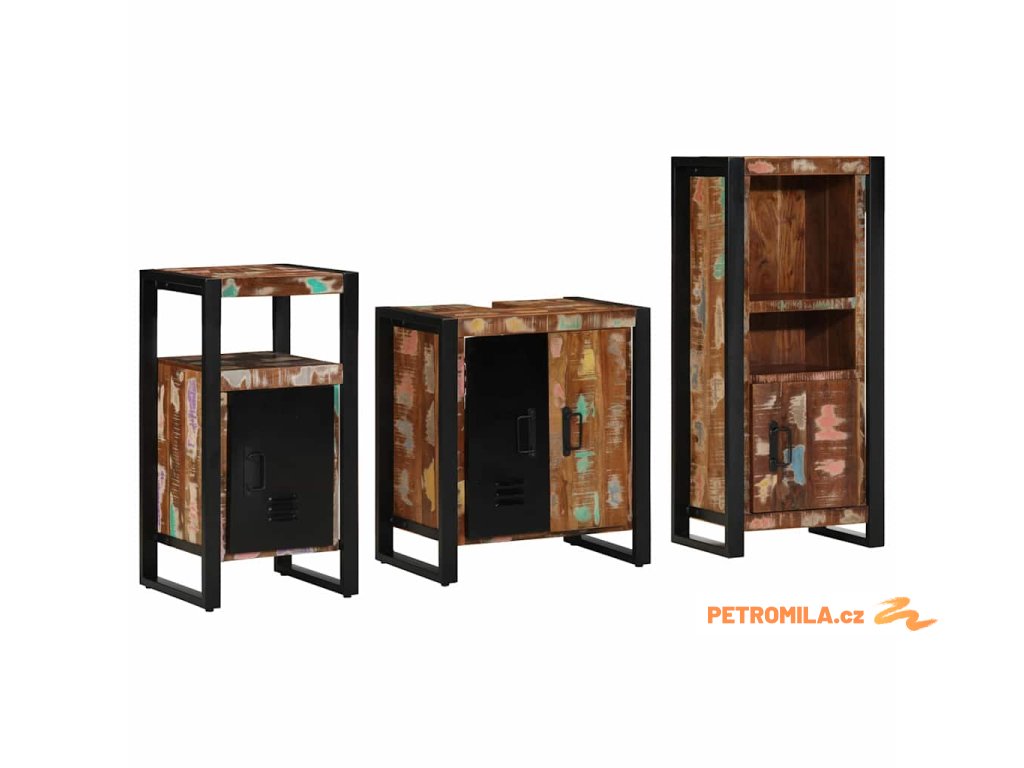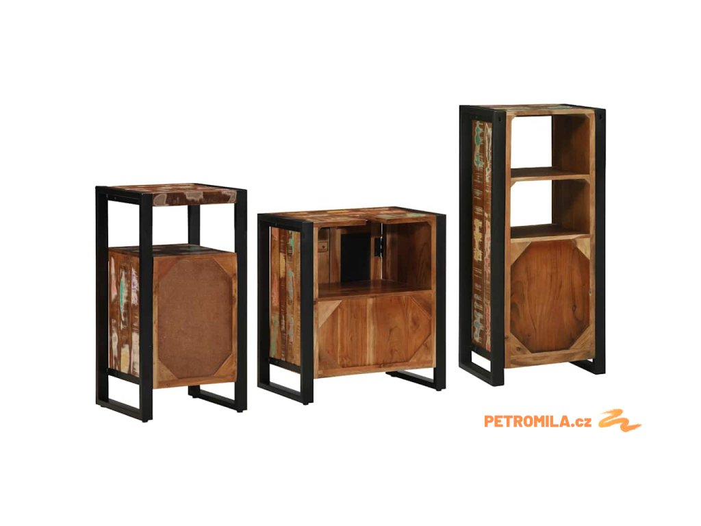 Sada koupelnového nábytku 3 pcs Masivní obnovované dřevo