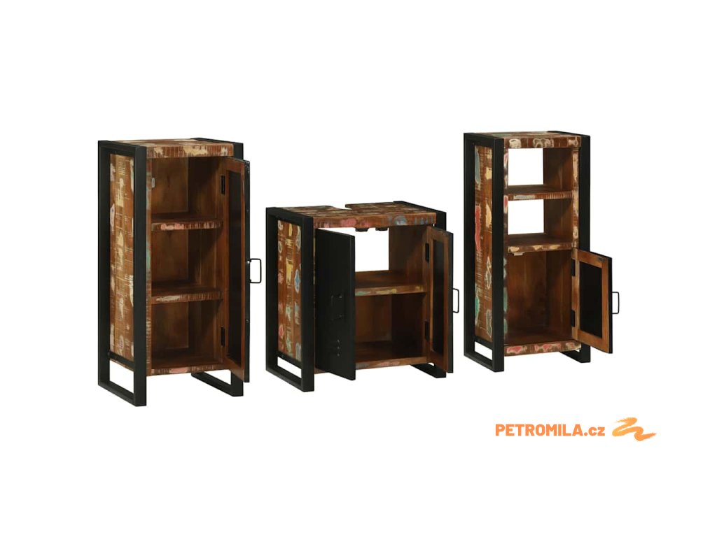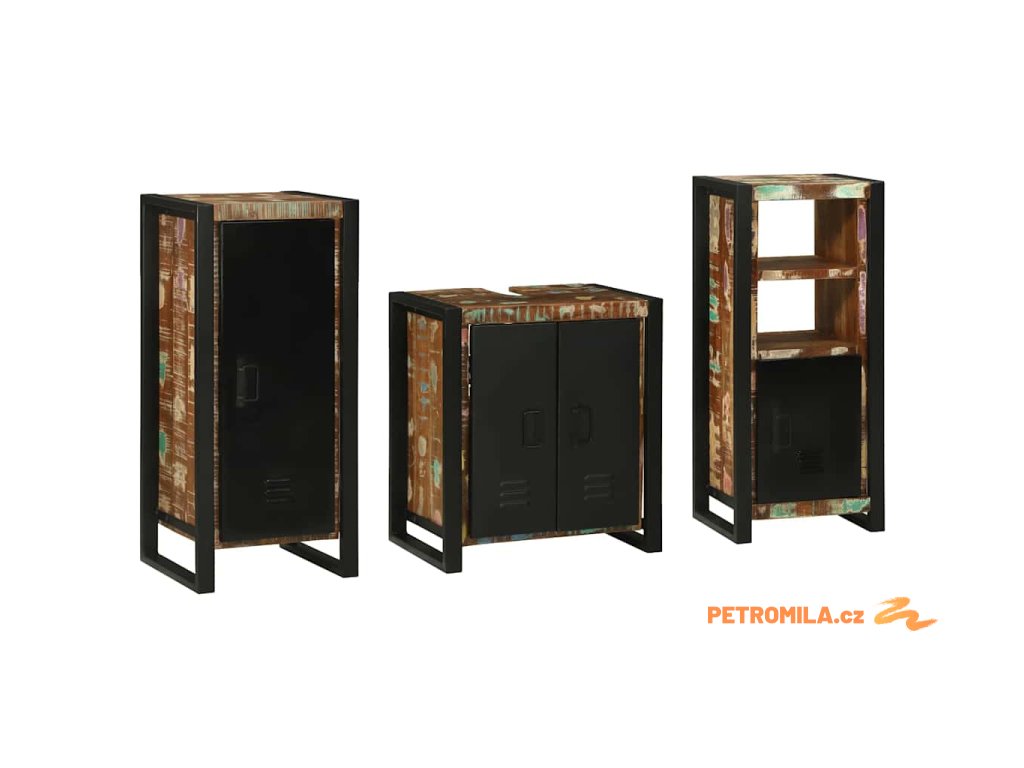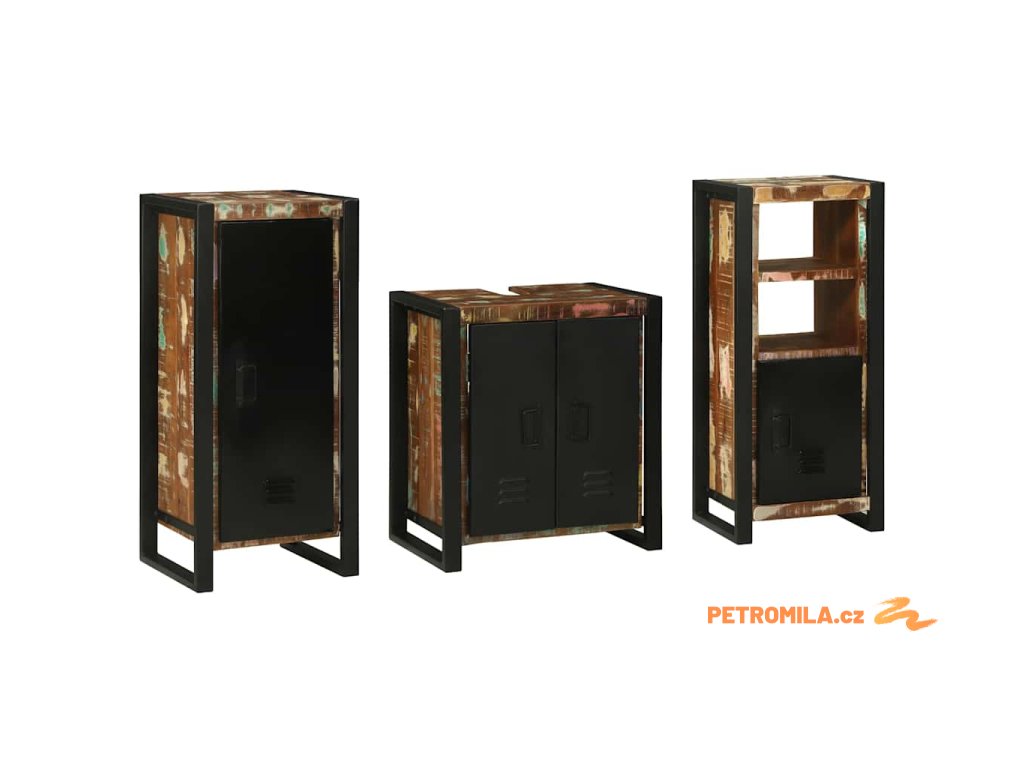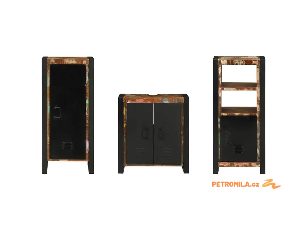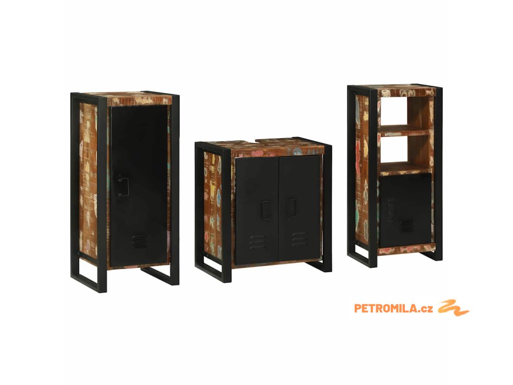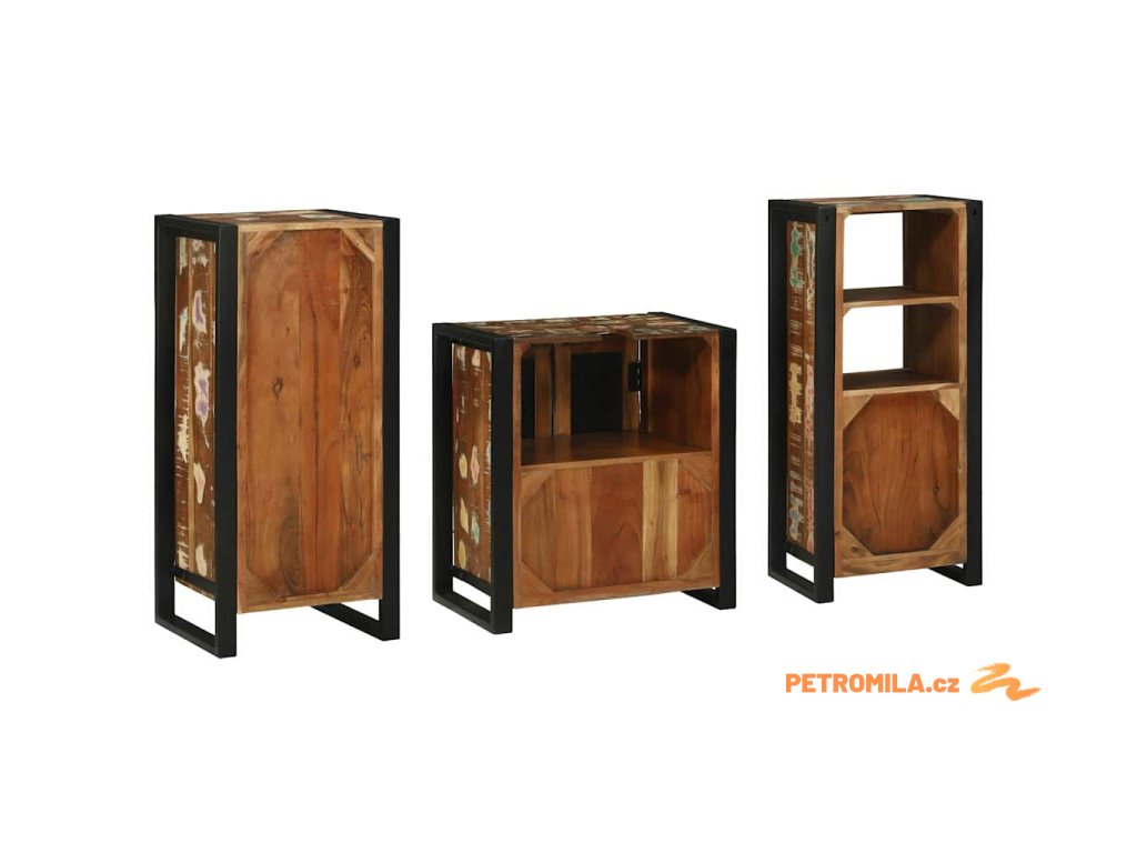 Sada koupelnového nábytku 3 pcs Masivní znovu použité dřevo