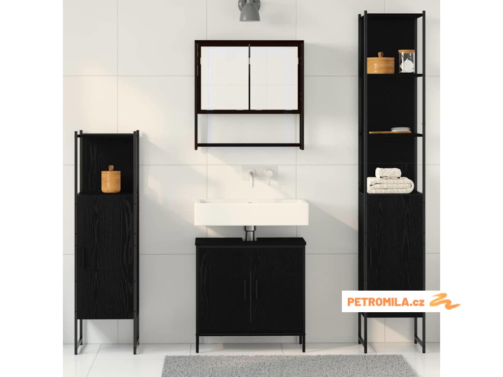 Sada koupelnového nábytku 4 pcs Černá 33 x 33 x 185.5 cm