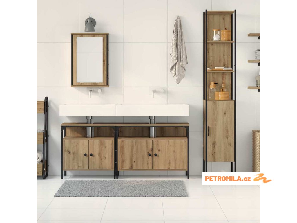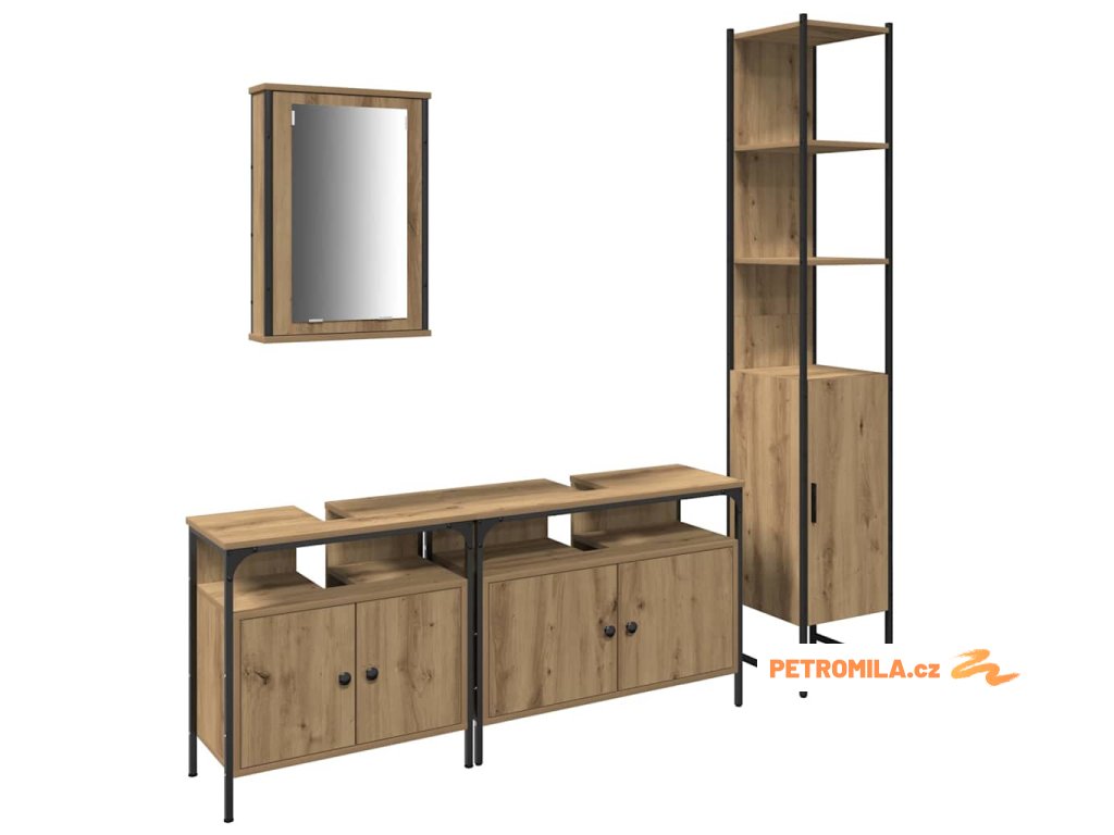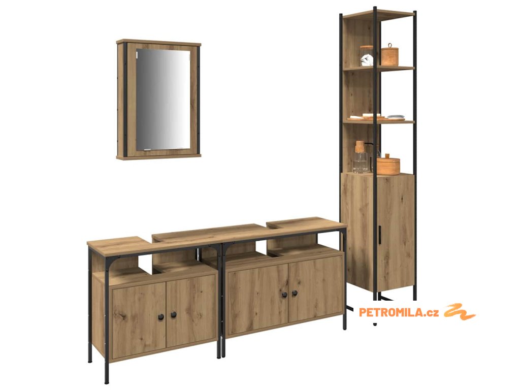 - Součásti: Souprava zahrnuje zrcadlovou skříňku, umyvadlové skříňky ve dvou velikostech a koupelnovou skříň pro spoustu úložného prostoru. Tyto kousky spolu vytvářejí stylový a uspořádaný vzhled vaší koupelny.