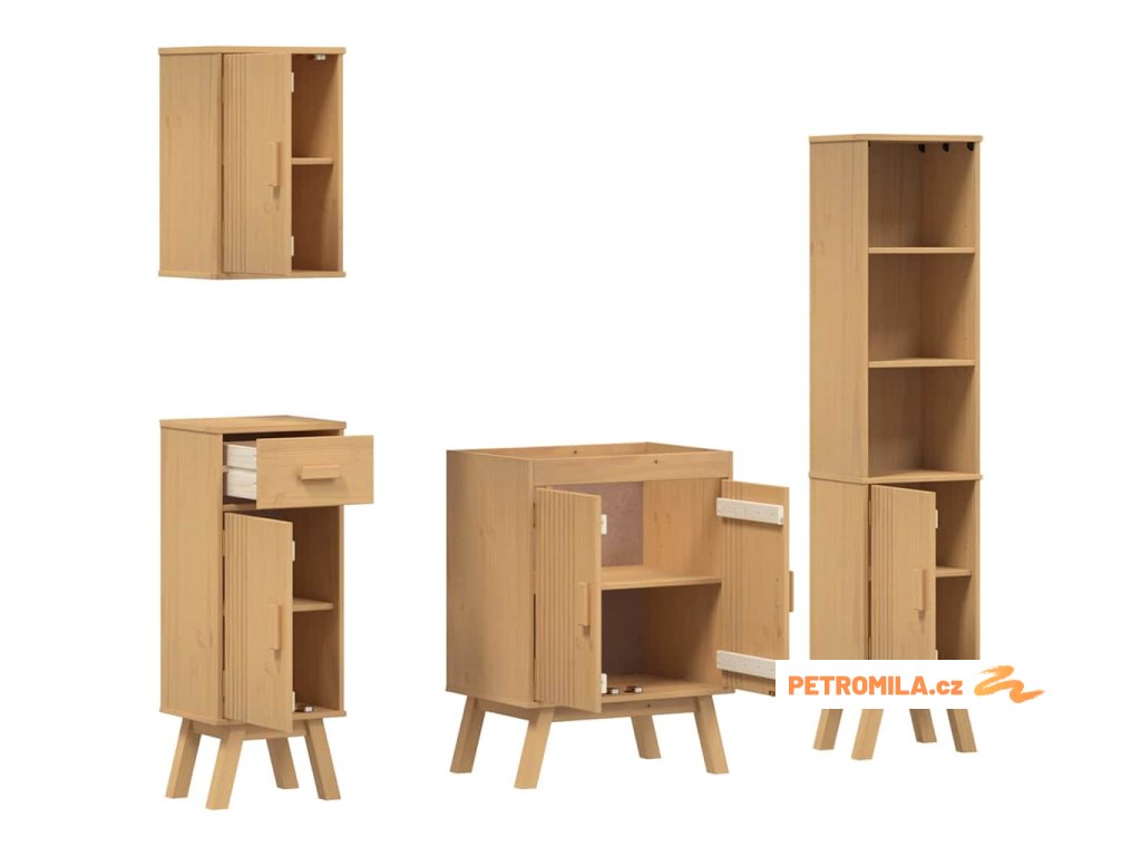 Tato sada dřevěného koupelnového nábytku je fakt skvělé spojení moderního designu a praktického využití. S jednoduchými liniemi a zaměřením na funkčnost je ideální pro každého, kdo chce oživit svou koupelnu. Vyrobená z masivního borového dřeva, má příjemnou hnědou barvu, která se hodí k různým stylům. Moderní atmosféra z ní dělá super volbu pro minimalistické koupelny, přináší do vašeho prostoru jak styl, tak účel.