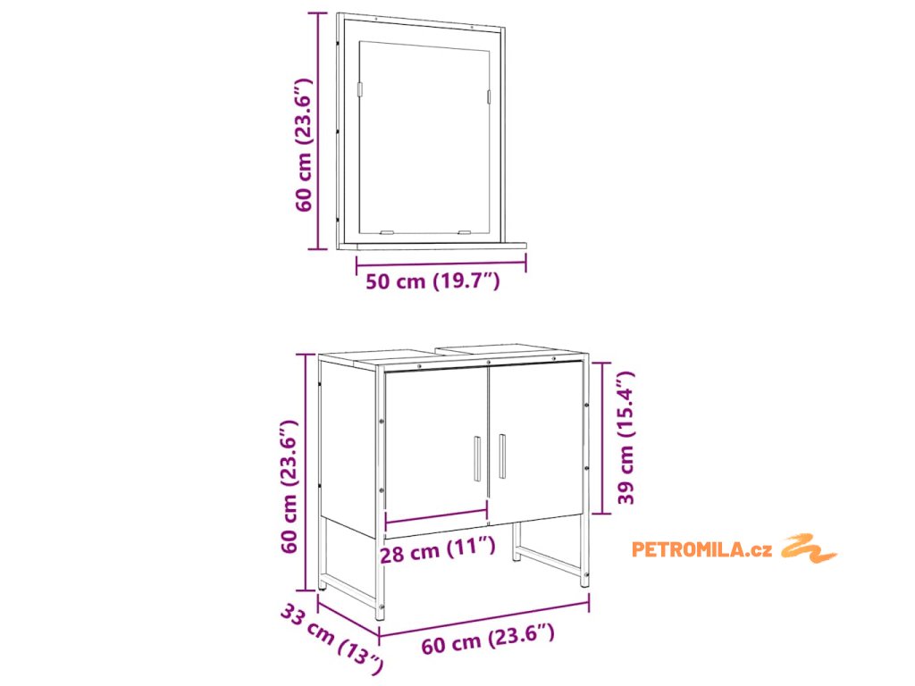 - 1 x Skříňka pod umyvadlo: 60 x 33 x 60 cm (ŠxHxV)