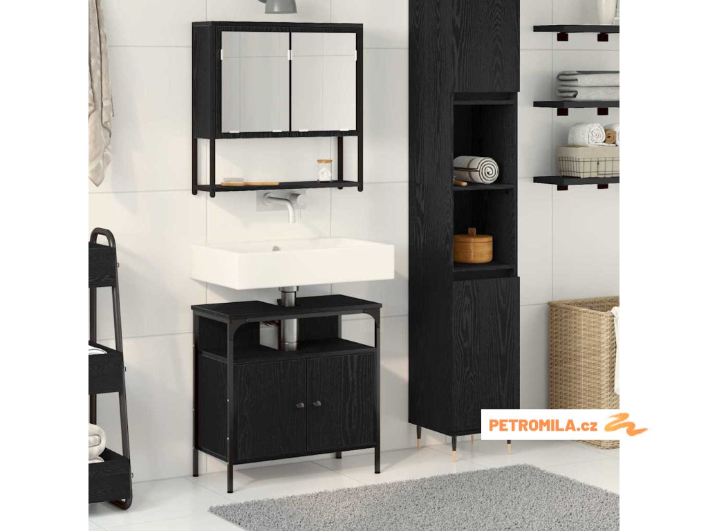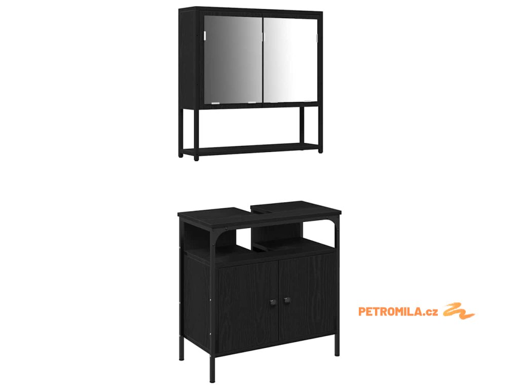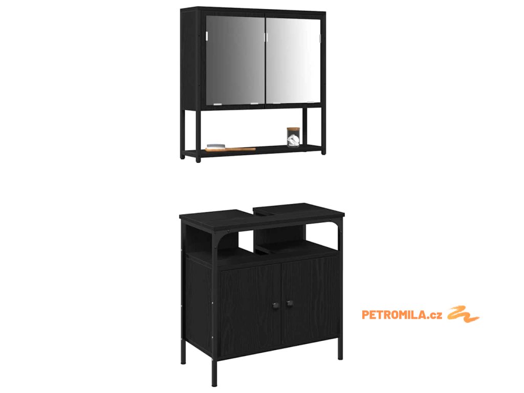 Sada koupelnového nábytku s policí 2 pcs Černá Kompozitní dřevo