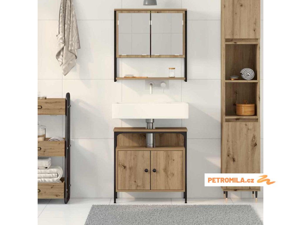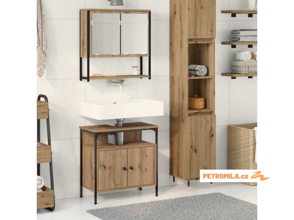Pokud chcete oživit atmosféru ve své koupelně, tenhle moderní set je ideálně navržený. Má čisté linie a minimální zdobení, takže skvěle zapadne do jakékoli současné koupelny. Obsahuje prostornou skříňku na umyvadlo a nástěnnou skříň, což vše dává dohromady pohodlí a estetiku.