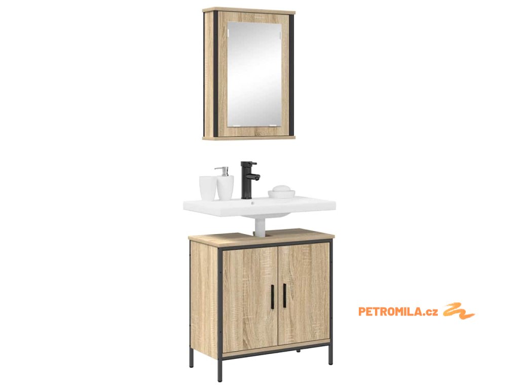 - Součásti setu: Set se skládá ze skříňky pod umyvadlo 60 cm x 30 cm x 60 cm a odpovídající zrcadlové skříňky o rozměrech 60 cm x 12 cm x 60 cm. Obě skříňky mají otočné dveře pro snadný přístup a nabízejí spoustu prostoru na ukládání. Černé úchyty dodávají šmrnc a usnadňují otevírání.