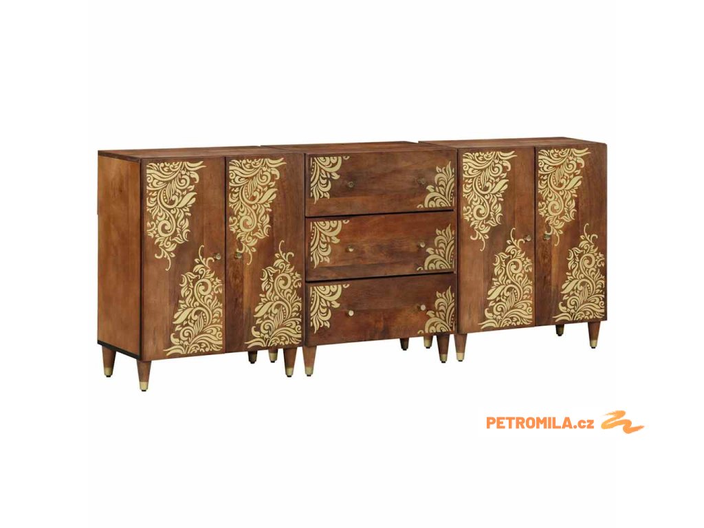 - Materiál: Vyrobena z masivního hrubého magnovníkového dřeva, tahle nábytková sada spojuje přírodní krásu a sílu. Texturovaný povrch dřeva ukazuje jeho unikátní strukturu a dodává mu rustikální pocit. Je dost odolná na každodenní používání, takže je solidní volba pro úložné potřeby.