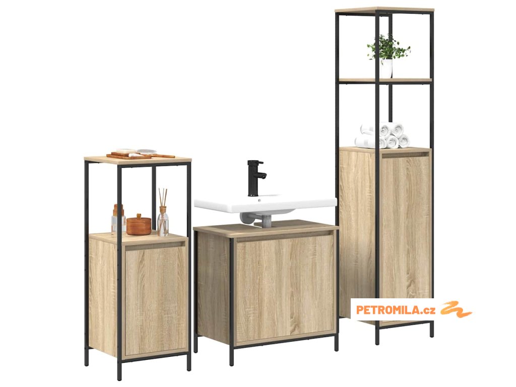 Sada koupelnového nábytku s policí 3 pcs Sonoma dub a černá