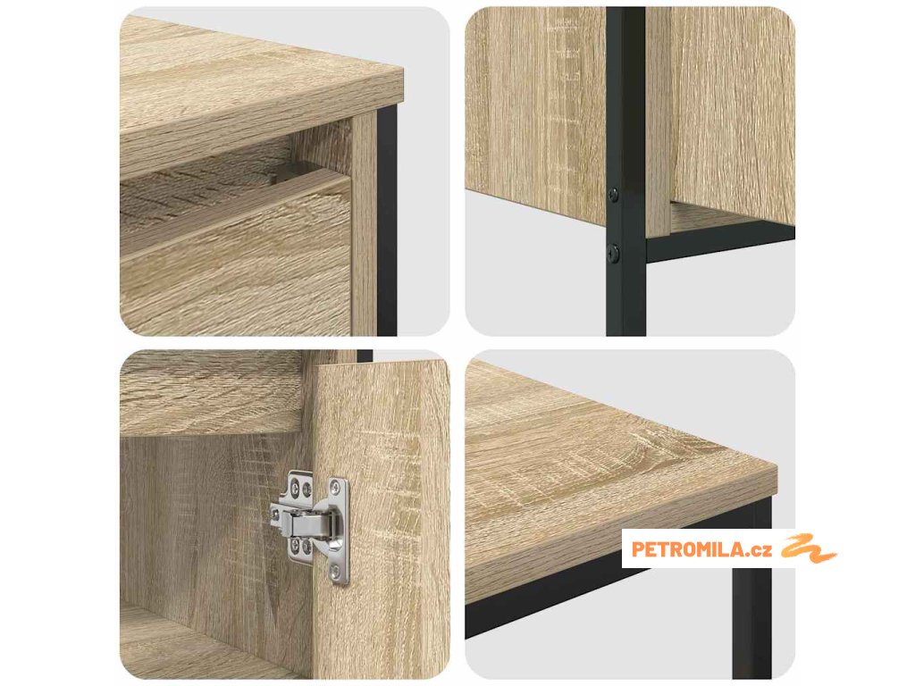 - Bytelná konstrukce: Tato skříňka, vyrobená z inženýrského dřeva s kovovými prvky, zvládá každodenní používání a zároveň skvěle vypadá. Je navržená tak, aby unesla až 60 kg, takže je spolehlivá volba.